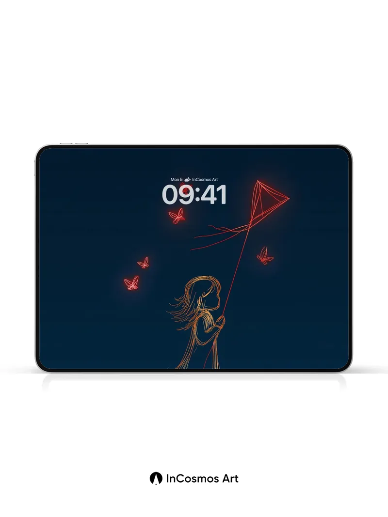 Glowing Kite Silhouette Wallpaper with Floating Butterflies