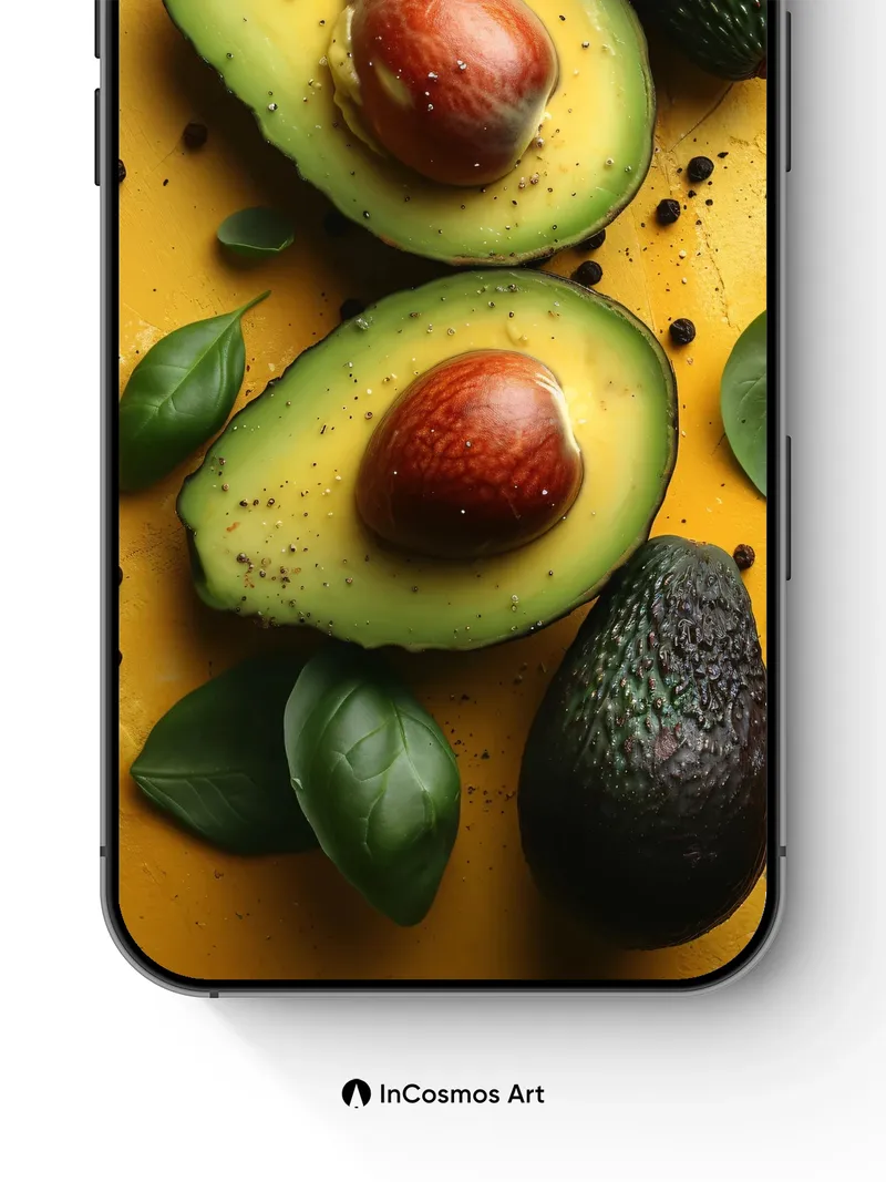 Debug product.metafields.custom.desc: Did you know avocado pits can be grown into trees with just water and sunlight? Here, the buttery flesh glows like liquid jade under a sunlit spell, speckled with peppercorns that scatter like tiny stars. The dark, bumpy skin of whole avocados rests beside halved ones, their seeds nestled like polished stones in emerald cradles—each leaf a whisper of earth’s quiet breath.
