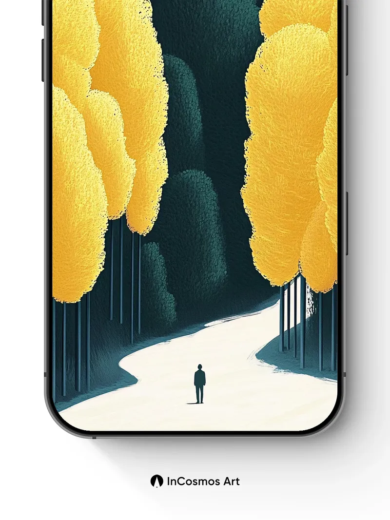 Debug page_description: Did you know that in ancient forests, sunlight filters through leaves like liquid gold? Here, the light breathes through textured canopies, each yellow bloom a soft, fibrous cloud suspended above a winding path of moonlit snow. You walk alone, yet feel watched by the silence—where shadows stretch like fingers and trees stand guard in dark blue stillness, their trunks thin as piano wires. Share this with your best friend. Send this to your love and swap a matching set. What if every step forward led to a world untouched by time?