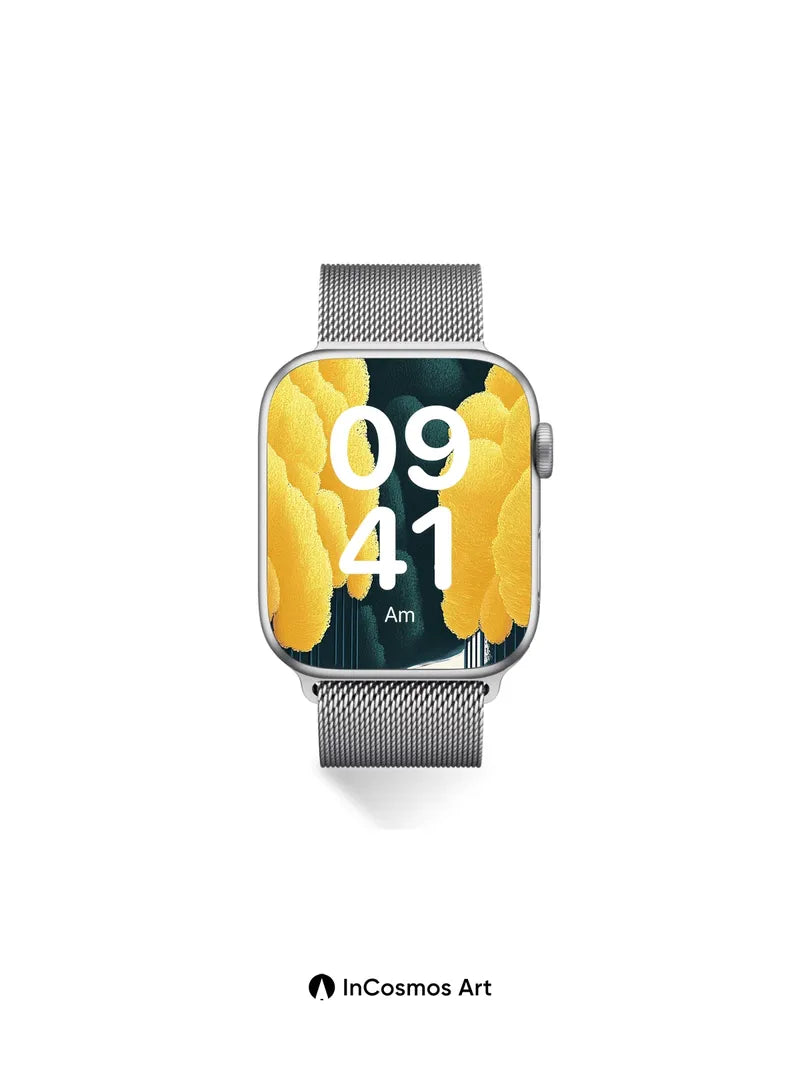 Debug product.metafields.custom.desc: Did you know that in ancient forests, sunlight filters through leaves like liquid gold? Here, the light breathes through textured canopies, each yellow bloom a soft, fibrous cloud suspended above a winding path of moonlit snow. You walk alone, yet feel watched by the silence—where shadows stretch like fingers and trees stand guard in dark blue stillness, their trunks thin as piano wires.
