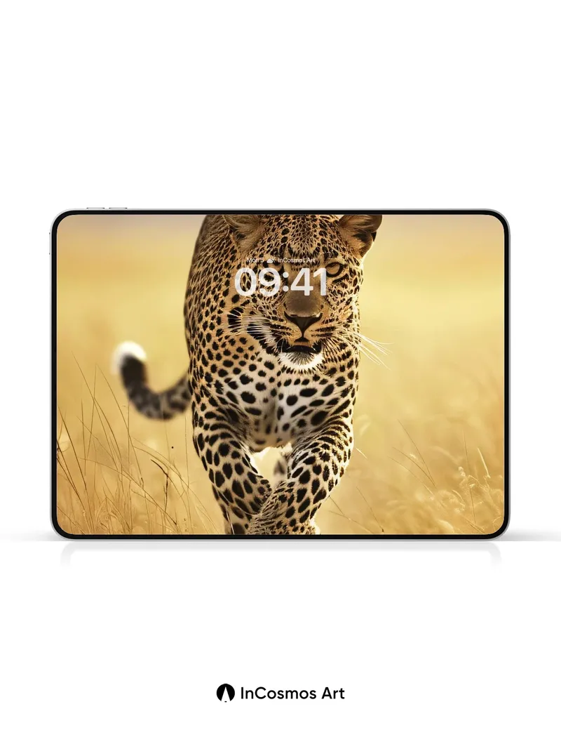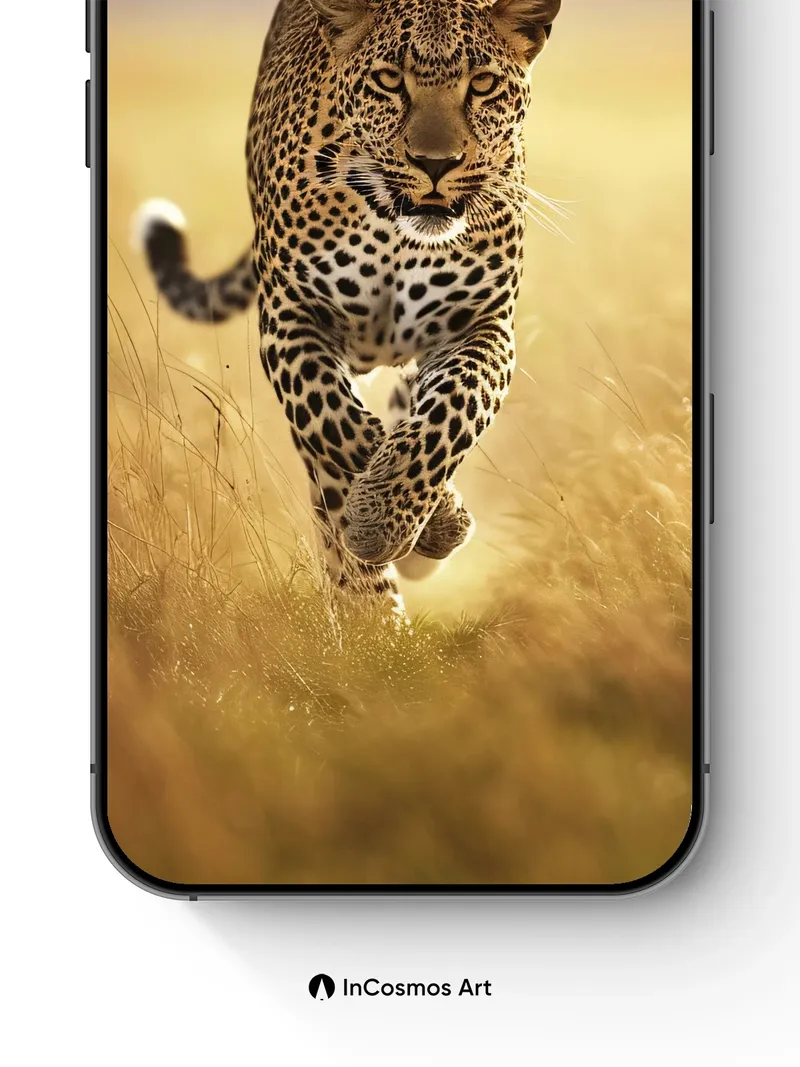 Debug page_description: Did you know leopards can run up to 58 km/h in short bursts, their spotted coats blending like shadows across sunlit grasslands? This image captures the moment just before impact—muscle taut, eyes locked, golden light crawling over every ridge of fur and blade of dry grass. You feel the heat radiating from the savanna, the quiet hum of life beneath the surface, as if time itself holds its breath. Share this with your best friend. Send this to your love and swap a matching set. What would you do if you could walk beside it without fear?