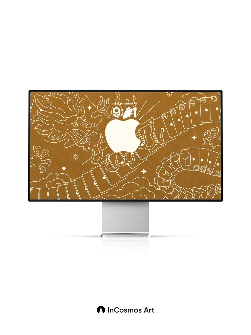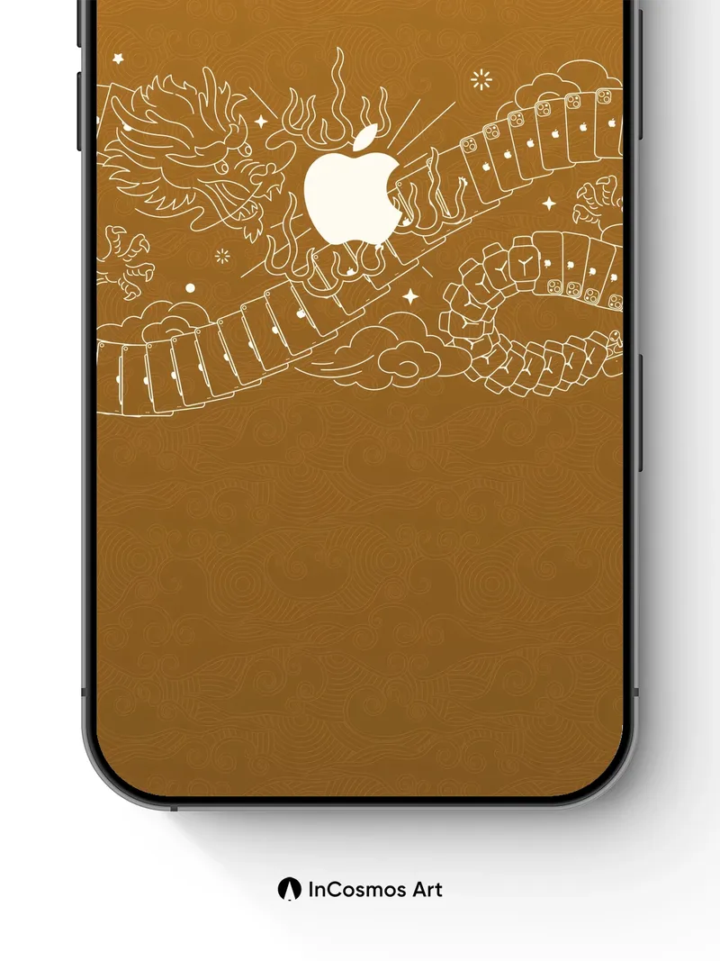 Golden Dragon Breath Wallpaper with Apple Emblem