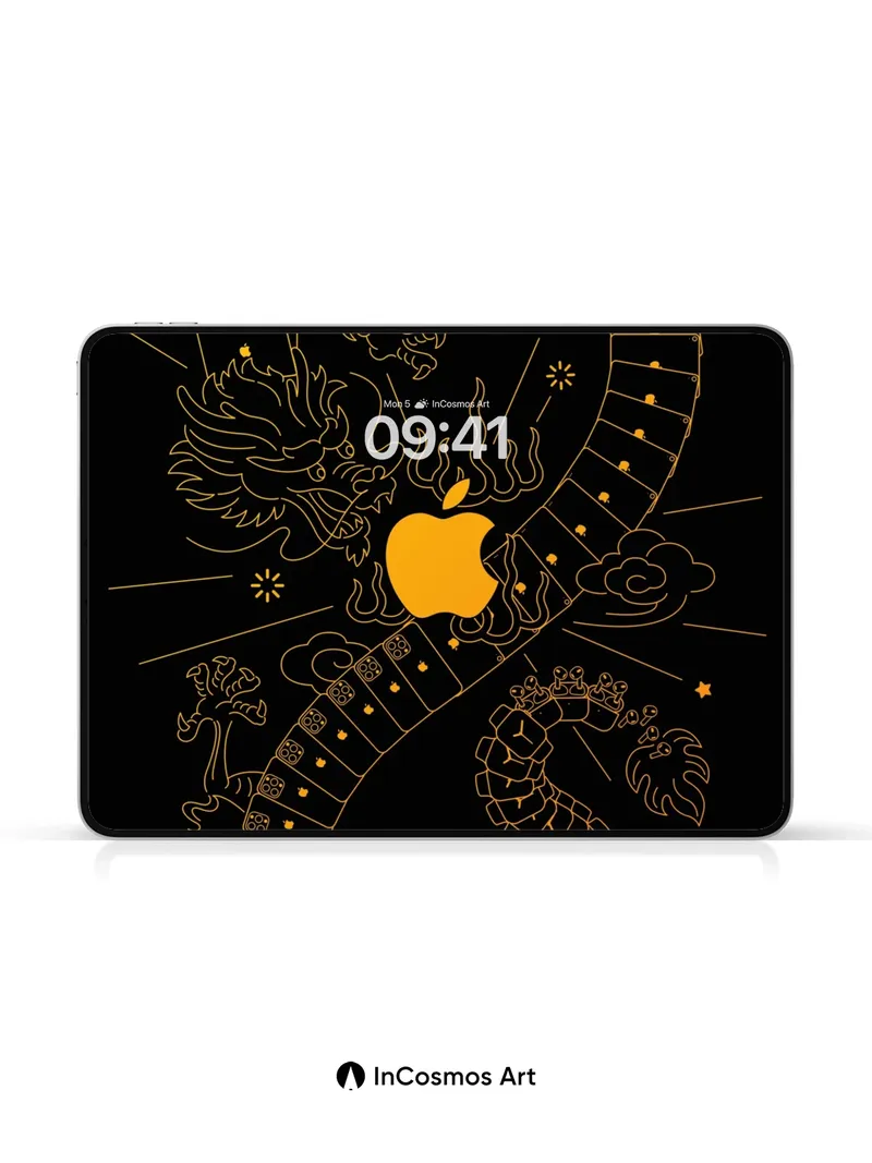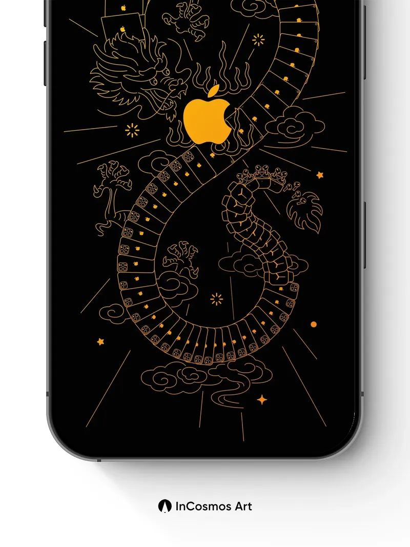 Debug page_description: Did you know ancient Chinese artisans once etched celestial patterns into bronze mirrors to reflect cosmic harmony? Here, a luminous dragon coils through digital circuitry, its scales glowing like molten gold against the void, while an iconic fruit burns at its heart—neither myth nor machine, but both. The stars blink in rhythm with your breath, and every line hums with quiet power. Share this with your best friend. Send this to your love and swap a matching set. What if technology was born from legend?