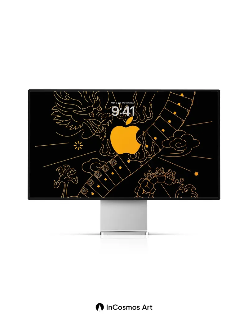 Did you know ancient Chinese artisans once etched celestial patterns into bronze mirrors to reflect cosmic harmony? Here, a luminous dragon coils through digital circuitry, its scales glowing like molten gold against the void, while an iconic fruit burns at its heart—neither myth nor machine, but both. The stars blink in rhythm with your breath, and every line hums with quiet power.