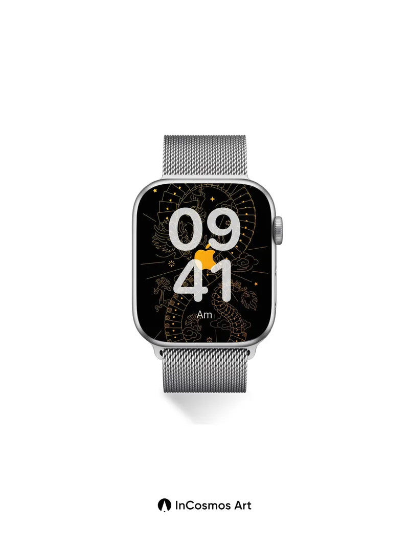 Debug product.metafields.custom.desc: Did you know ancient Chinese artisans once etched celestial patterns into bronze mirrors to reflect cosmic harmony? Here, a luminous dragon coils through digital circuitry, its scales glowing like molten gold against the void, while an iconic fruit burns at its heart—neither myth nor machine, but both. The stars blink in rhythm with your breath, and every line hums with quiet power.