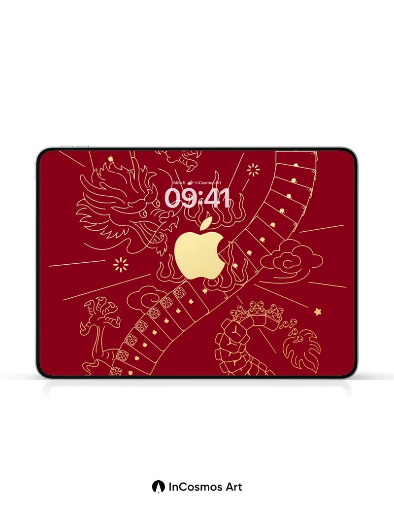 Debug og_description: Did you know ancient Chinese artisans used gold leaf to trace celestial dragons on crimson silk? Here, the dragon coils like a circuit of light, its spine lined with folded cards bearing tiny apples—each one a whisper of modern myth. You feel the warmth of molten metal beneath your fingertips, as if the design breathes through the screen, bridging tradition and tomorrow.