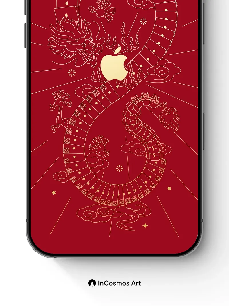 Golden Dragon Spiral Wallpaper with Apple Core