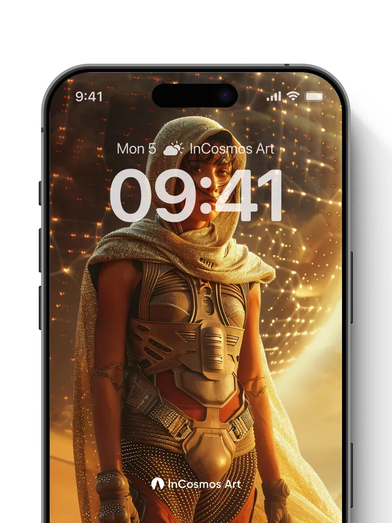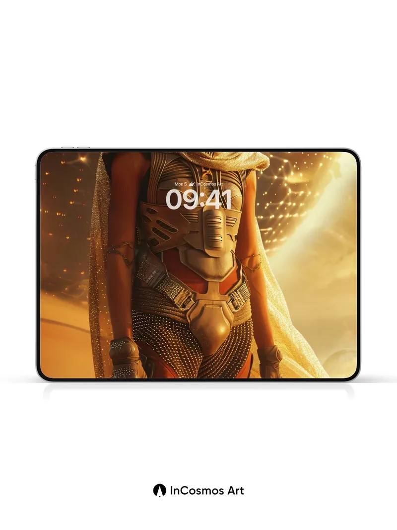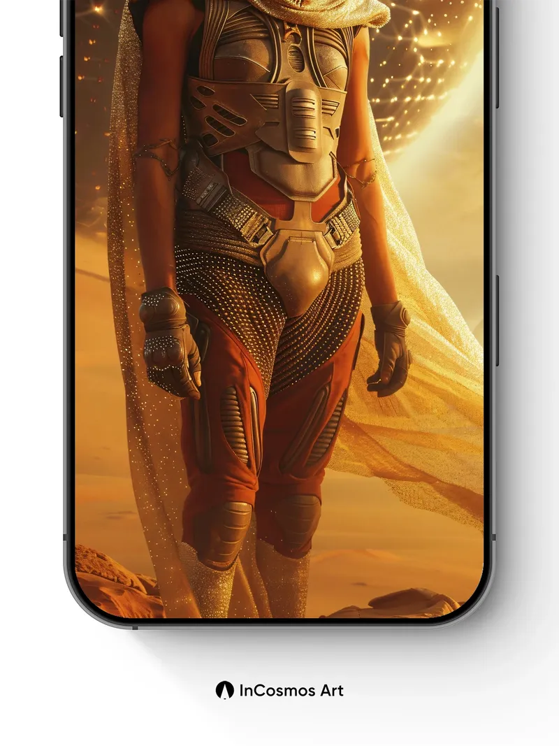 Golden Dune Warrior Wallpaper with Starlit Veil