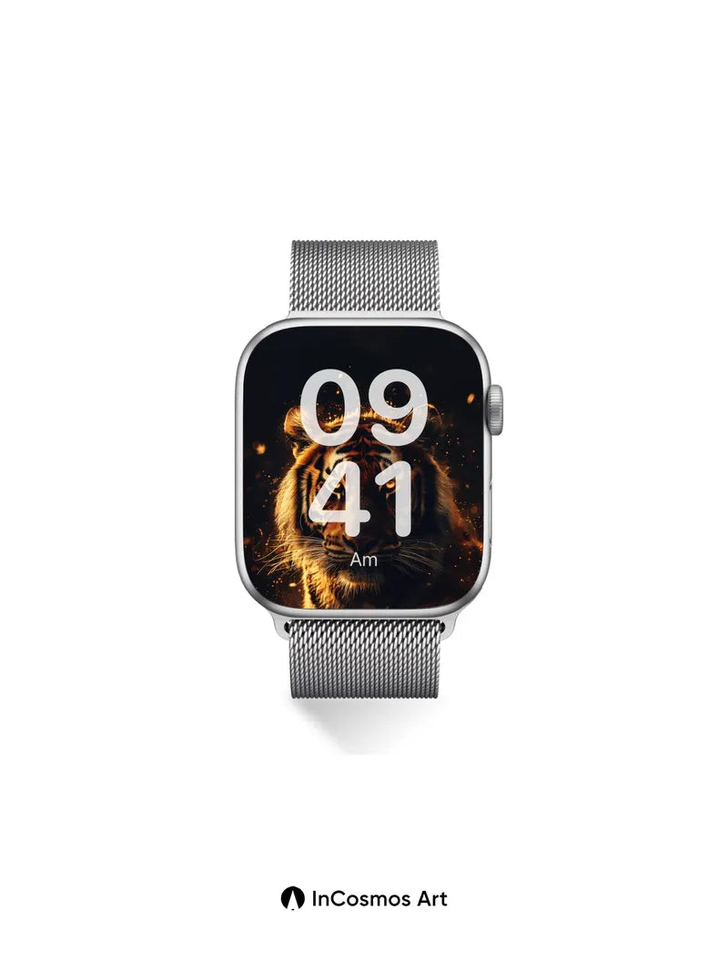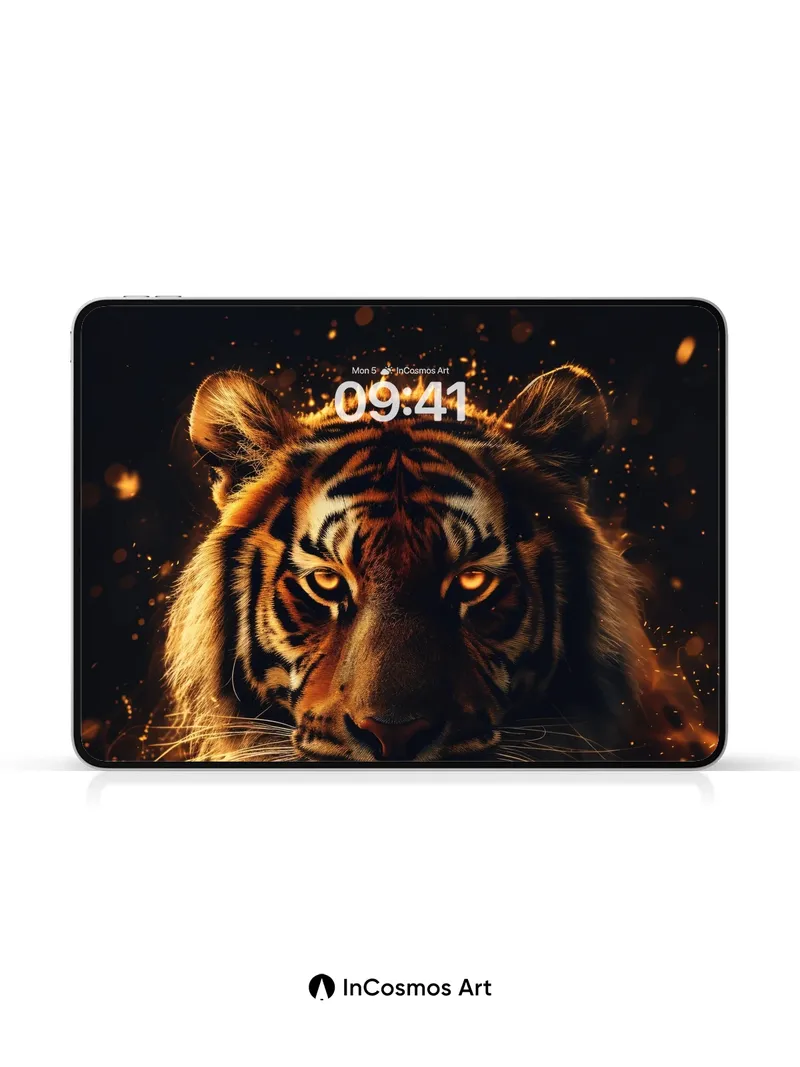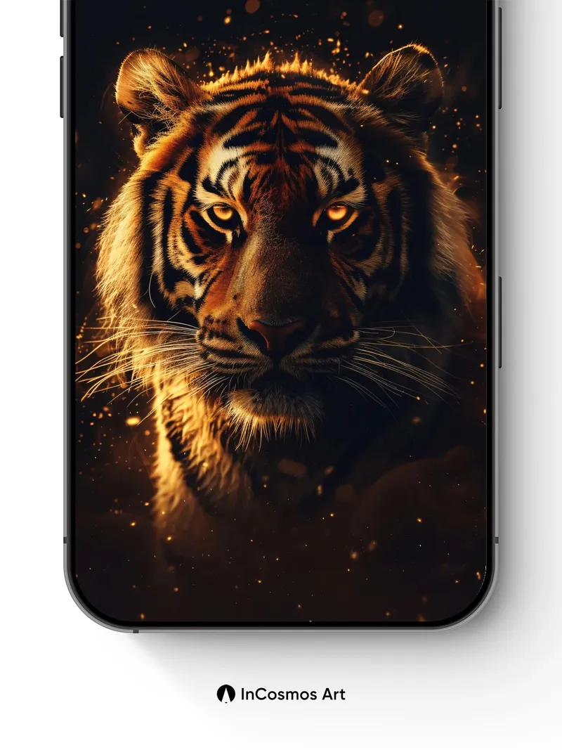 Golden Ember Tiger Wallpaper with Cosmic Dust