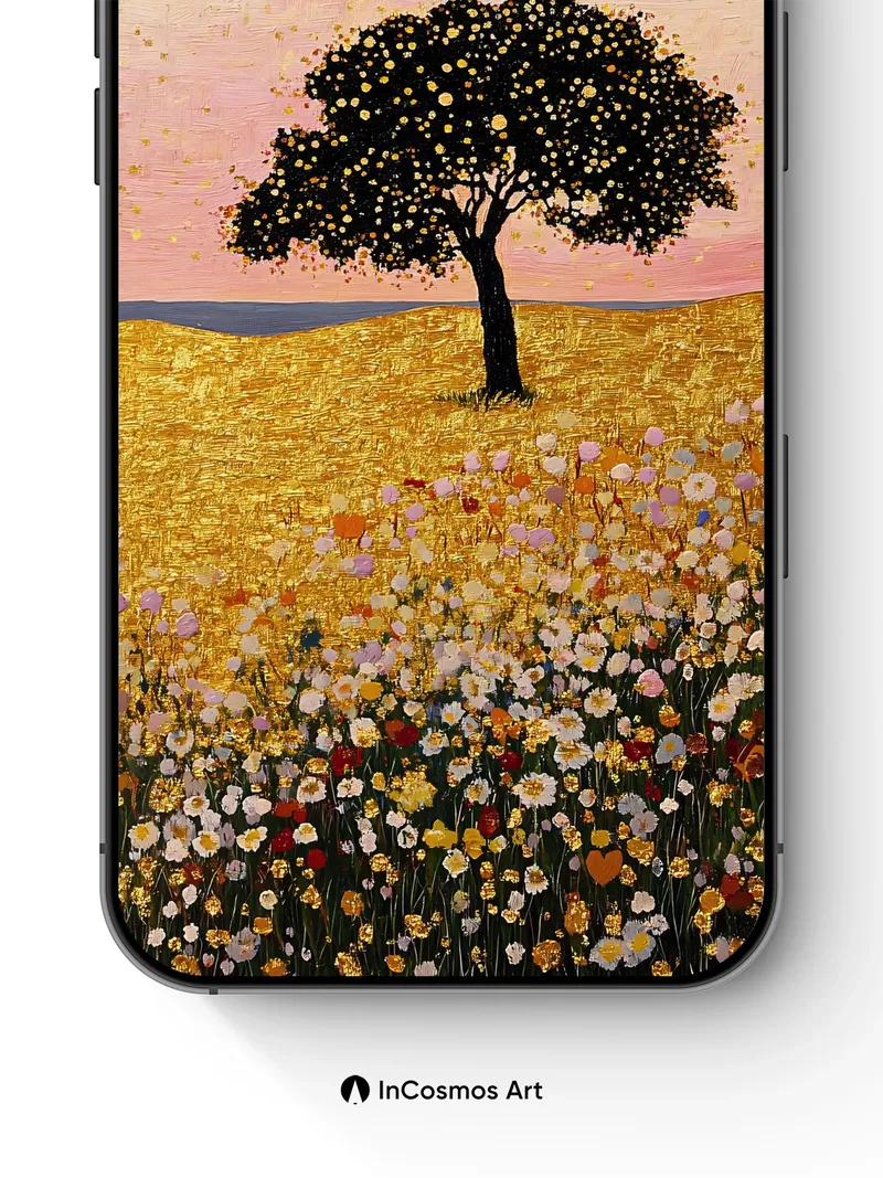 Golden Field Wallpaper with Starlit Tree