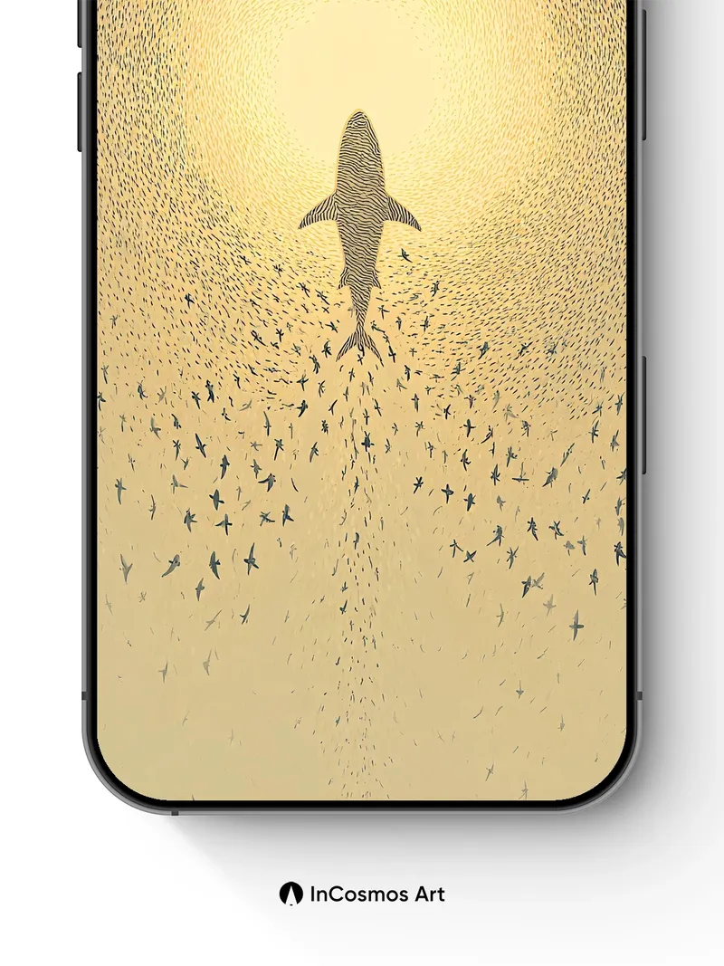 A radiant sunburst crowns a golden bird soaring upward, its wings spread wide as if embracing the sky. Did you know the golden ratio is often found in nature's most beautiful designs, like this bird's graceful form? Surrounded by a flock of birds, the scene evokes a sense of freedom and unity, as if each bird is a note in a harmonious symphony of flight. Share this with your best friend. Send this to your love and swap a matching set. What secrets does the sky hold for those who dare to fly? The full resolution of this artwork/wallpaper is 4320 × 7708, with a file size of 6.32 MB MB. Image in App code: bj4043 1080:1927 Applicable to mobile phones. This product only contains one wallpaper, other wallpapers in the multi-device effect preview need to be purchased separately. Download Information The download link will be on the “Thank You” page once payment is completed. Most wallpaper themes can be instantly downloaded once payment is processed. Few wallpaper backgrounds will generally be processed and sent within 48 hours to your email inbox as our team must confirm that patterns, quality, and links are in proper working order before shipping.