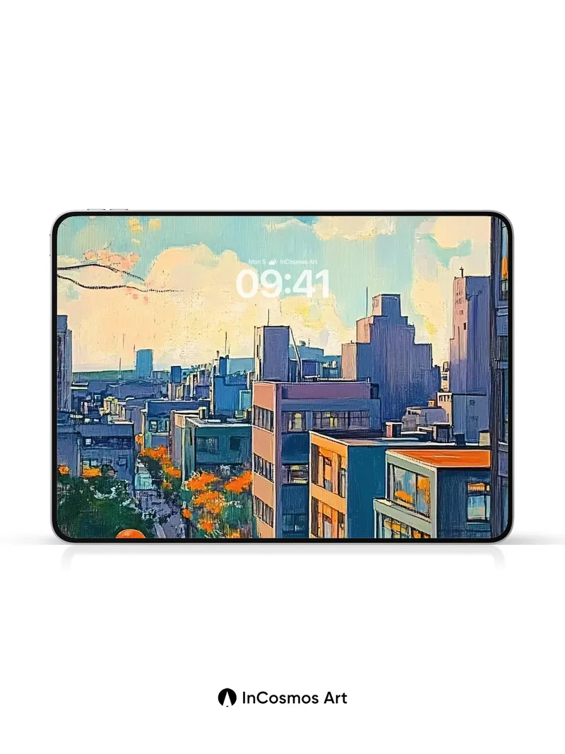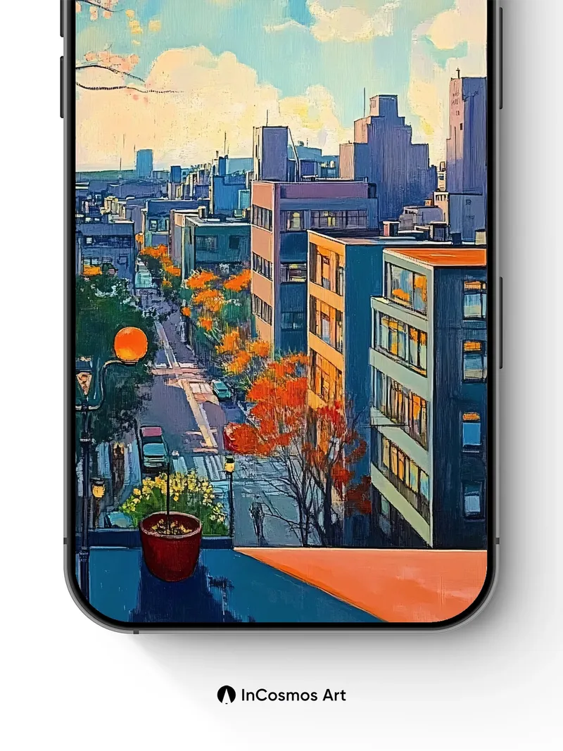 Debug product.metafields.custom.desc: Did you know that cherry blossoms in Tokyo bloom for only seven days each spring? Here, their soft petals drift like whispers over a city bathed in amber light, where glass facades shimmer with reflections of a sky painted in tangerine and cerulean. The street below hums quietly—pedestrians are silhouettes against warm lamplight, and trees blush crimson as if touched by autumn’s hand.