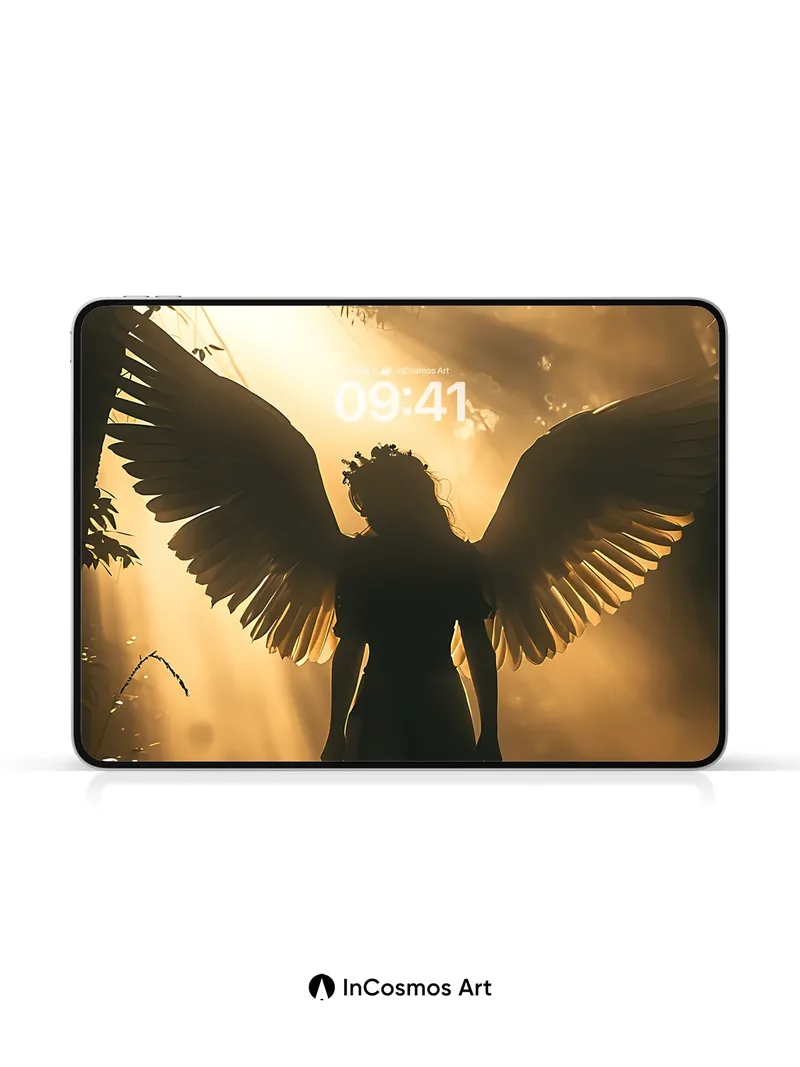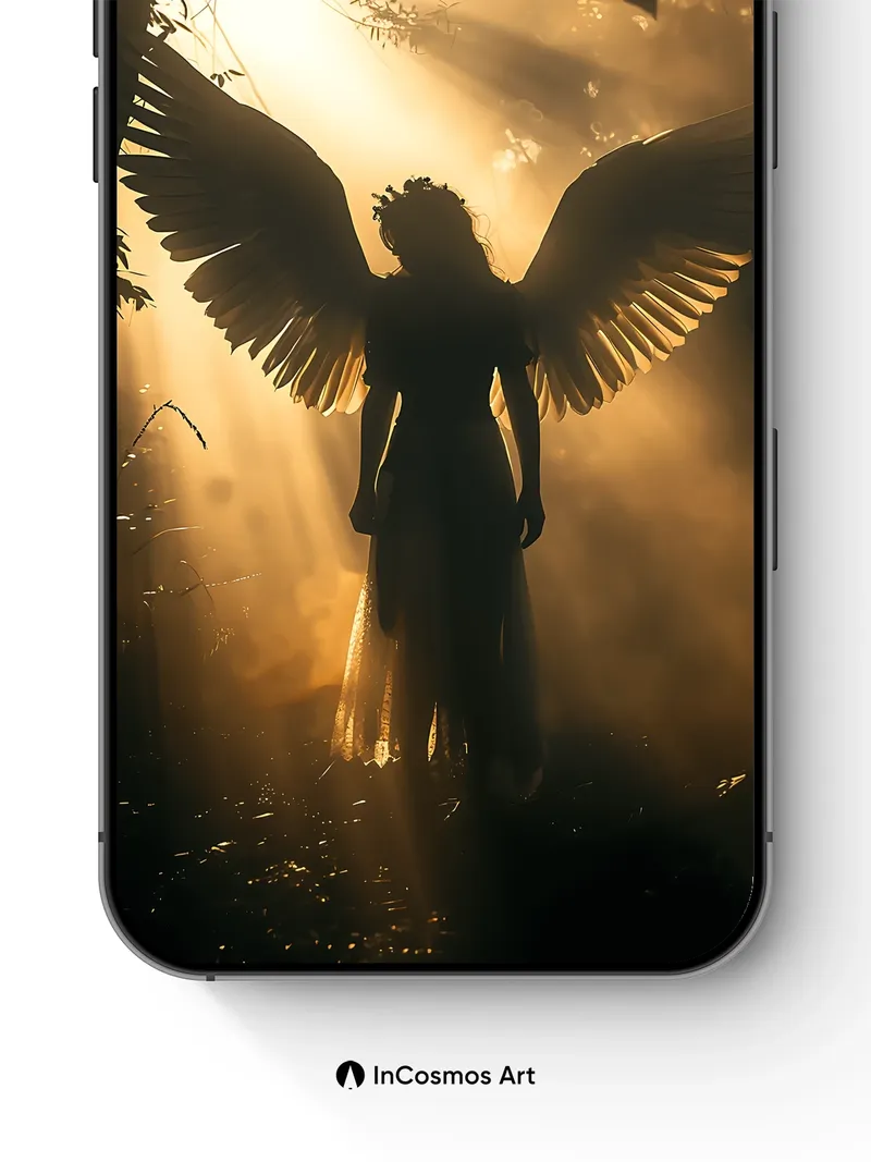 Golden Hush Angel Wallpaper with Sunlit Wings