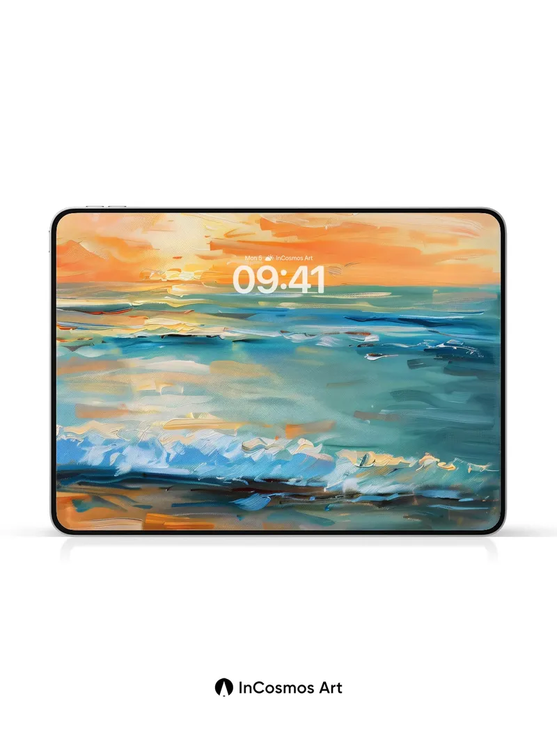 Golden Hush Ocean Wallpaper with Sunlit Foam