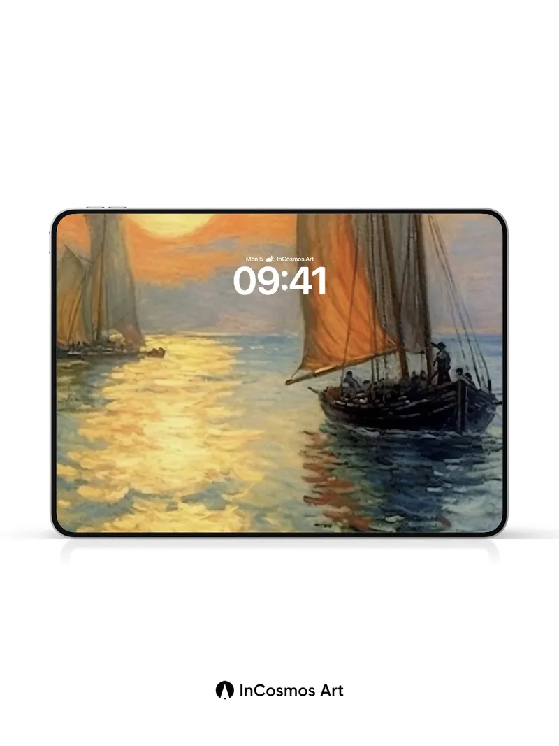 Golden Hush Sailboat Wallpaper with Sunset Reflections