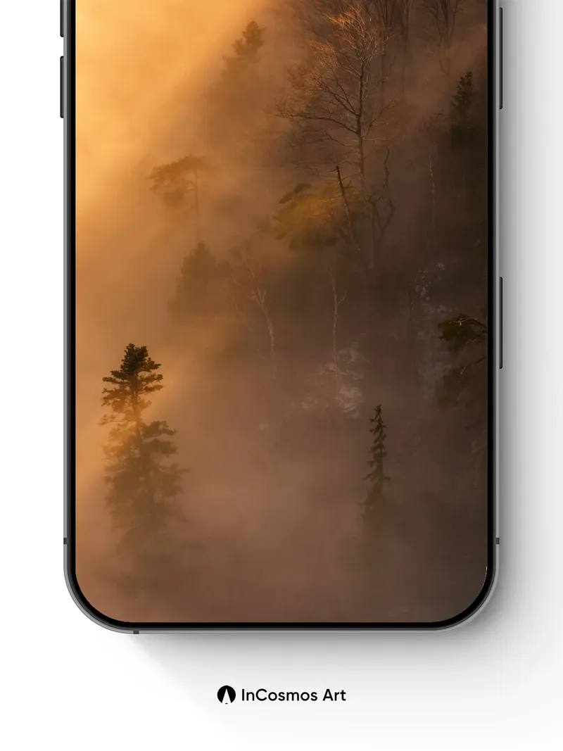 Golden Hush Wallpaper with Mist-Crawling Trees