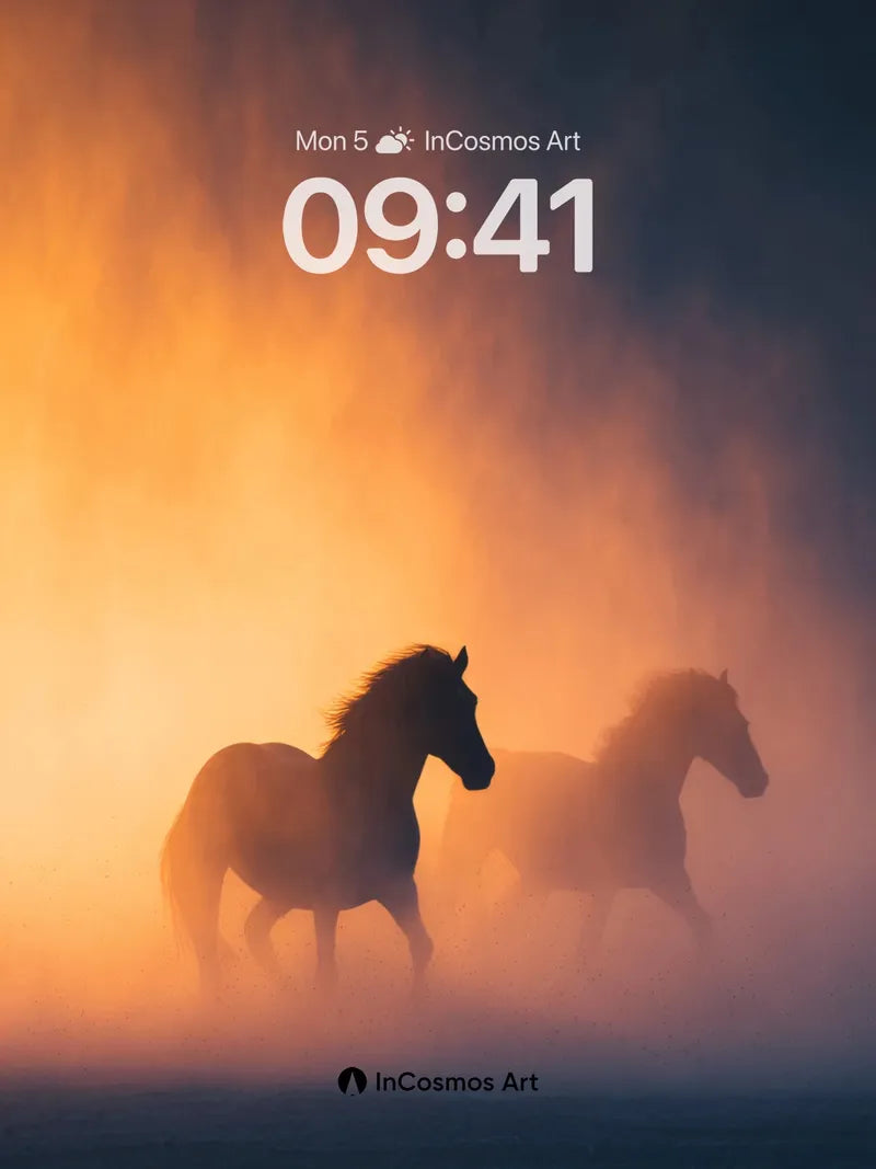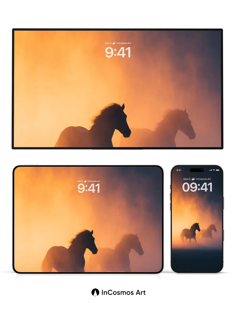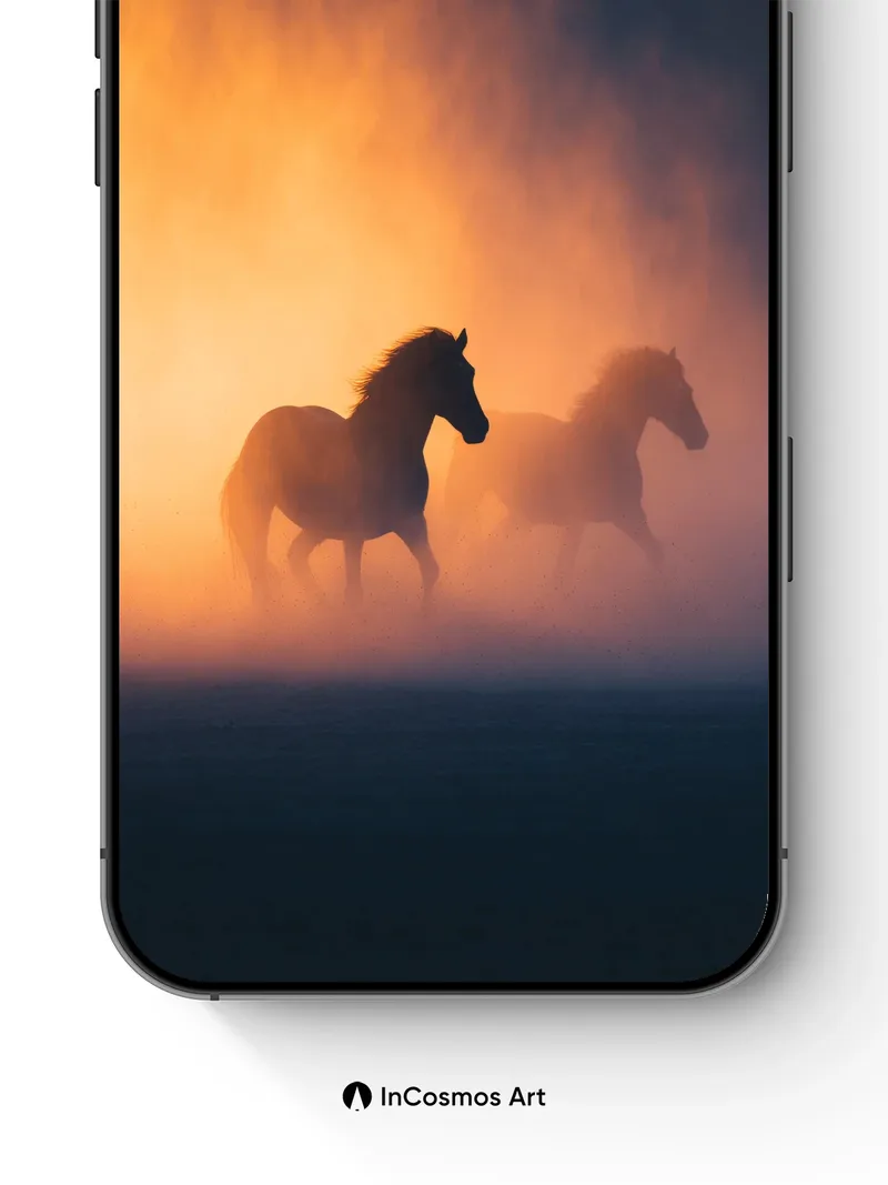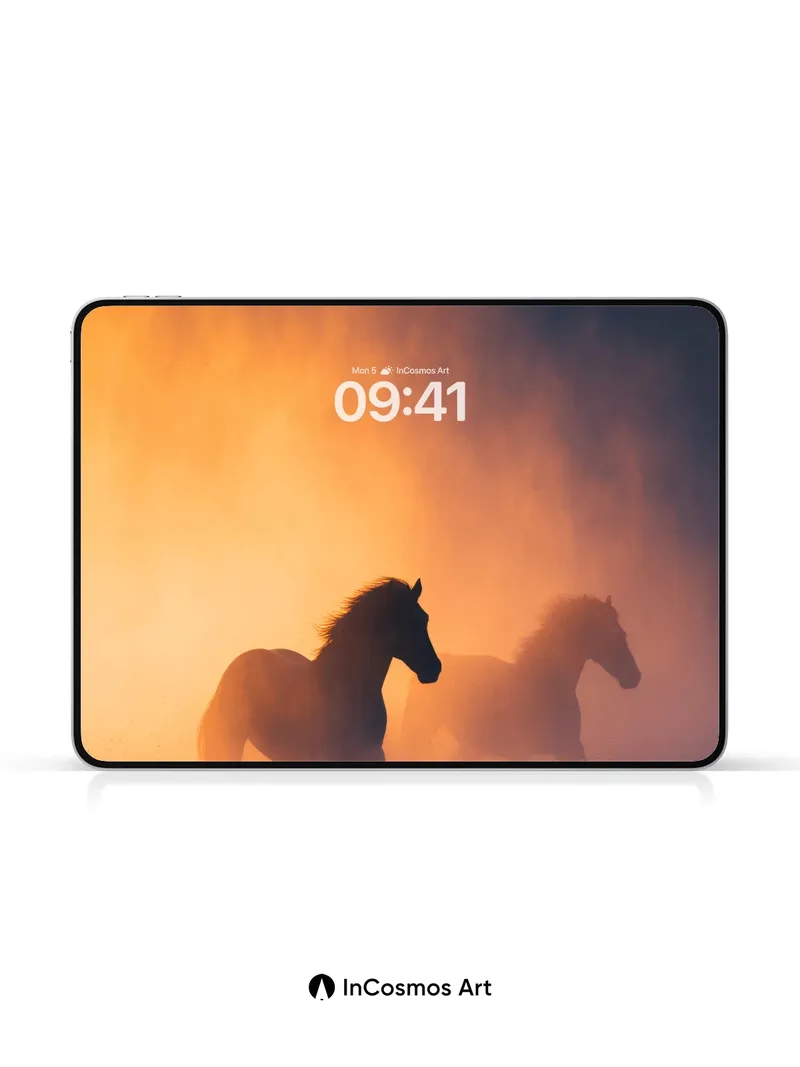 Golden Hush Wallpaper with Mist-Weaved Horses