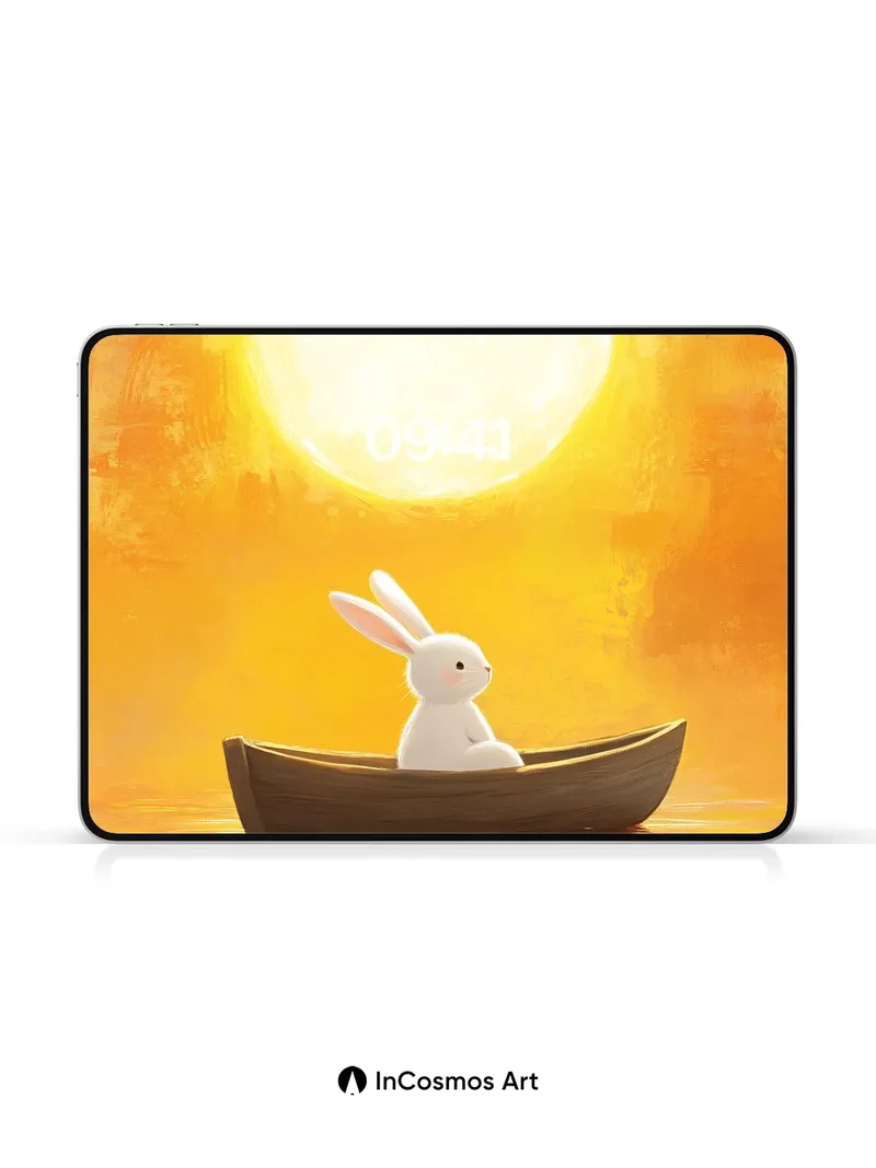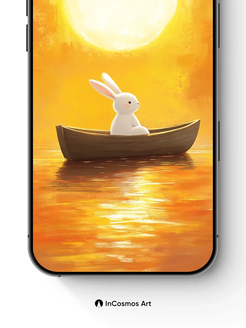 Golden Hush Wallpaper with Moonlit Rabbit