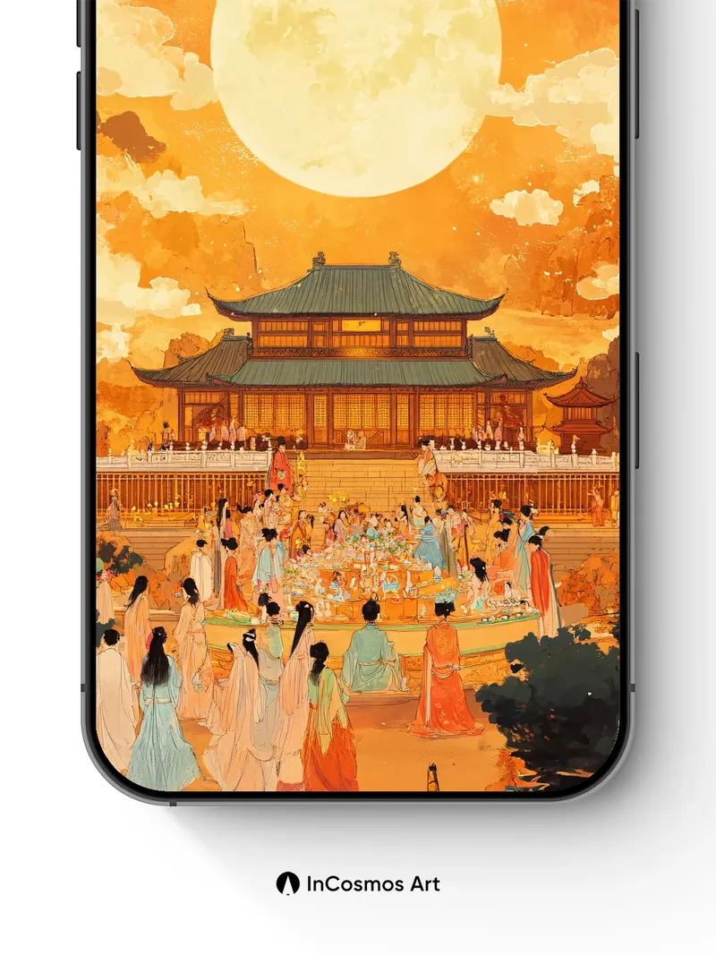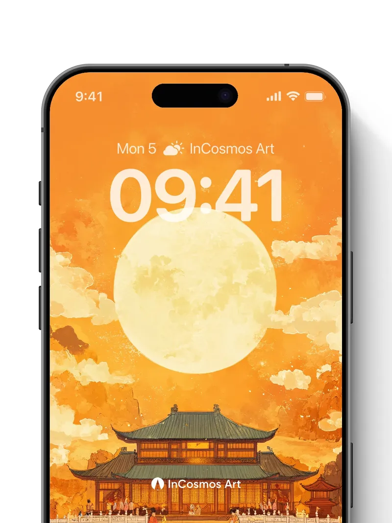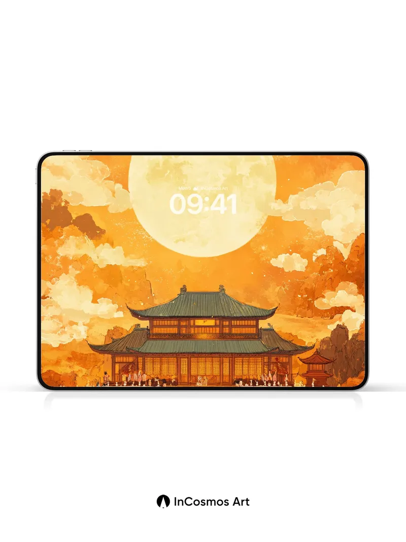 Golden Moonlight Wallpaper with Ancient Courtyard