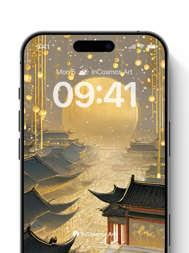 Golden Moonlight Wallpaper with Hanging Lanterns