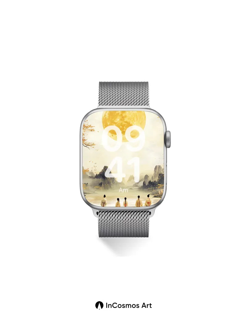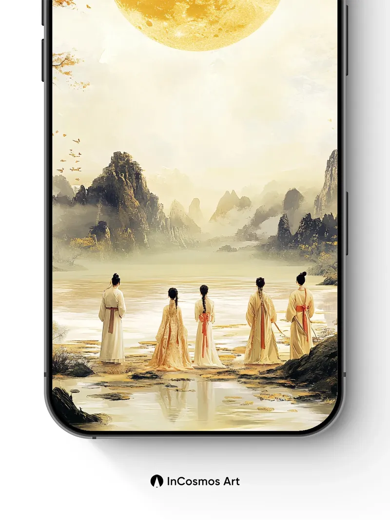 Golden Moonlight Wallpaper with Silent Figures
