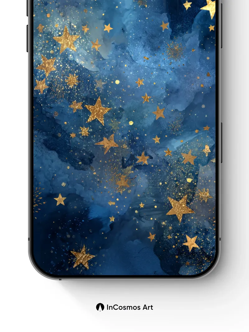 Debug page_description: Did you know that gold leaf has been used in art since ancient Egypt, where it was believed to reflect divine light? Here, it dances across a deep indigo cosmos like suspended constellations, each star etched with delicate shimmer and trailing faint glimmers as if breath from the universe itself. The night sky doesn’t just hang—it pulses with quiet magic, whispering of distant galaxies and forgotten dreams. Share this with your best friend. Send this to your love and swap a matching set. What if the stars were actually tiny doors to other worlds?