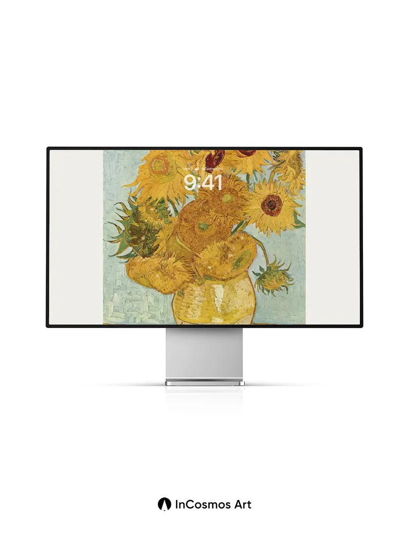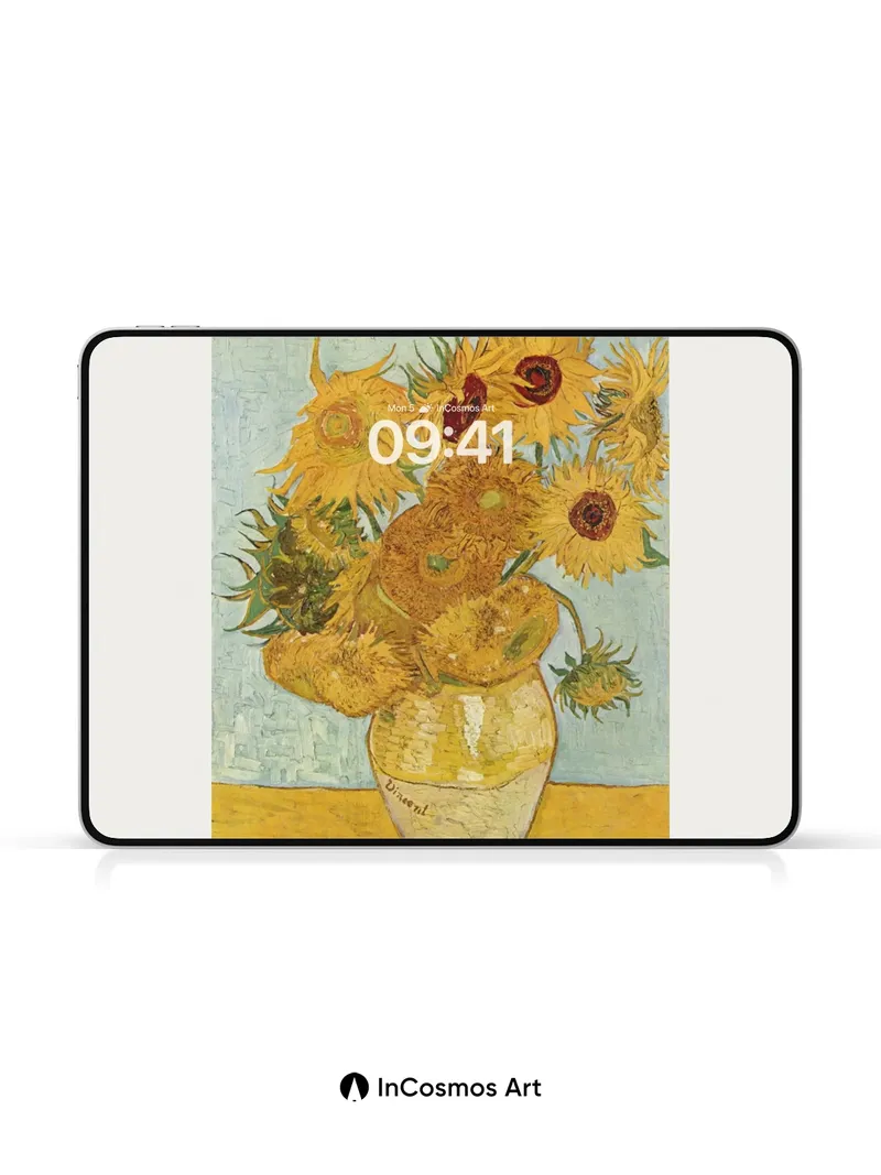 Golden Reverie Sunflower Wallpaper with Van Gogh's Brush