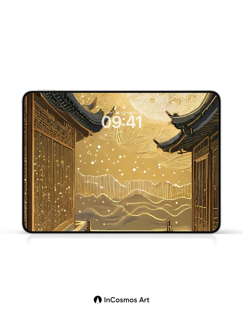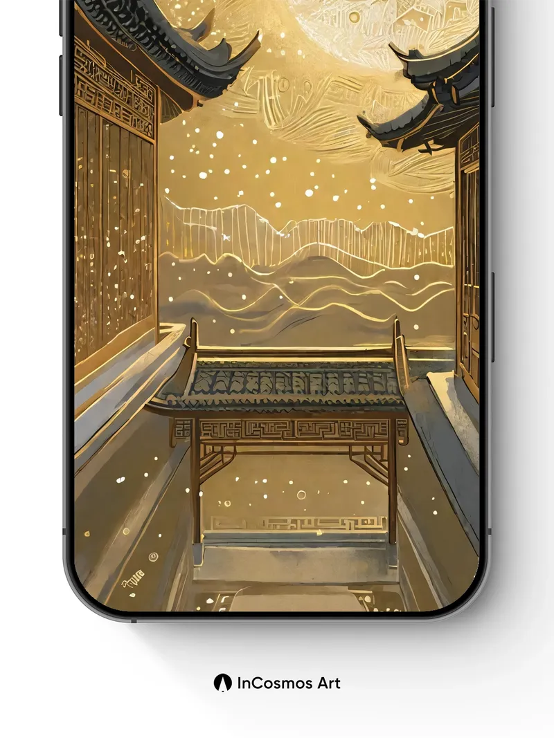 Debug page_description: Did you know ancient Chinese astronomers mapped the moon’s surface using mythic constellations? Here, light breathes through gilded filigree, casting a luminous glow across snow-dusted eaves and celestial patterns that seem to pulse with quiet energy. The sky is not just a backdrop—it’s a living tapestry of stars and swirling clouds, framed by ornate wooden lattices that whisper stories of forgotten palaces. Share this with your best friend. Send this to your love and swap a matching set. What if the moon remembered every dream you’ve ever had?
