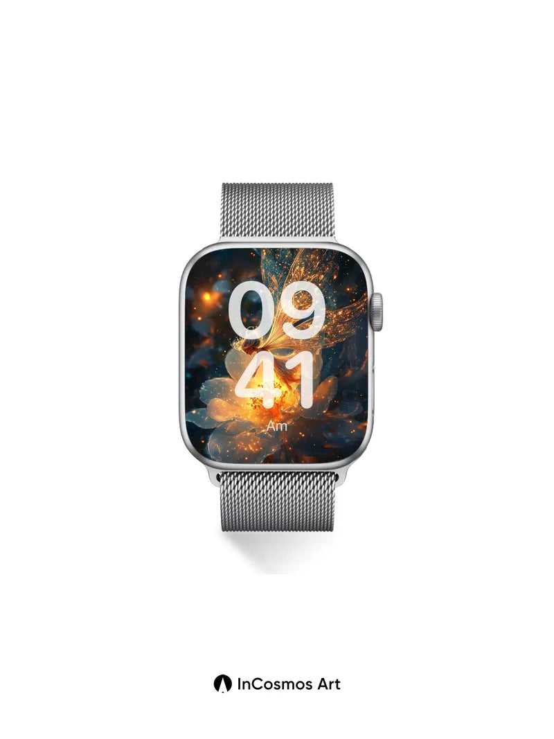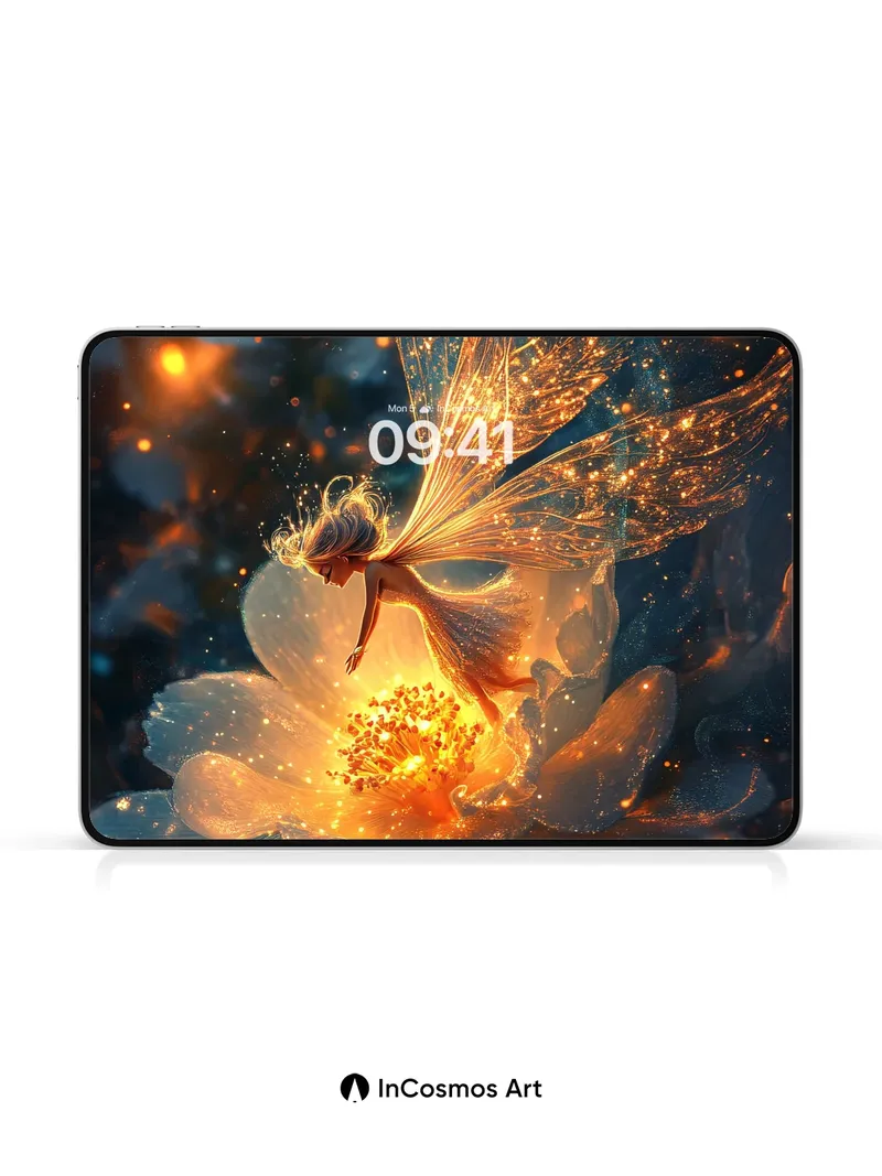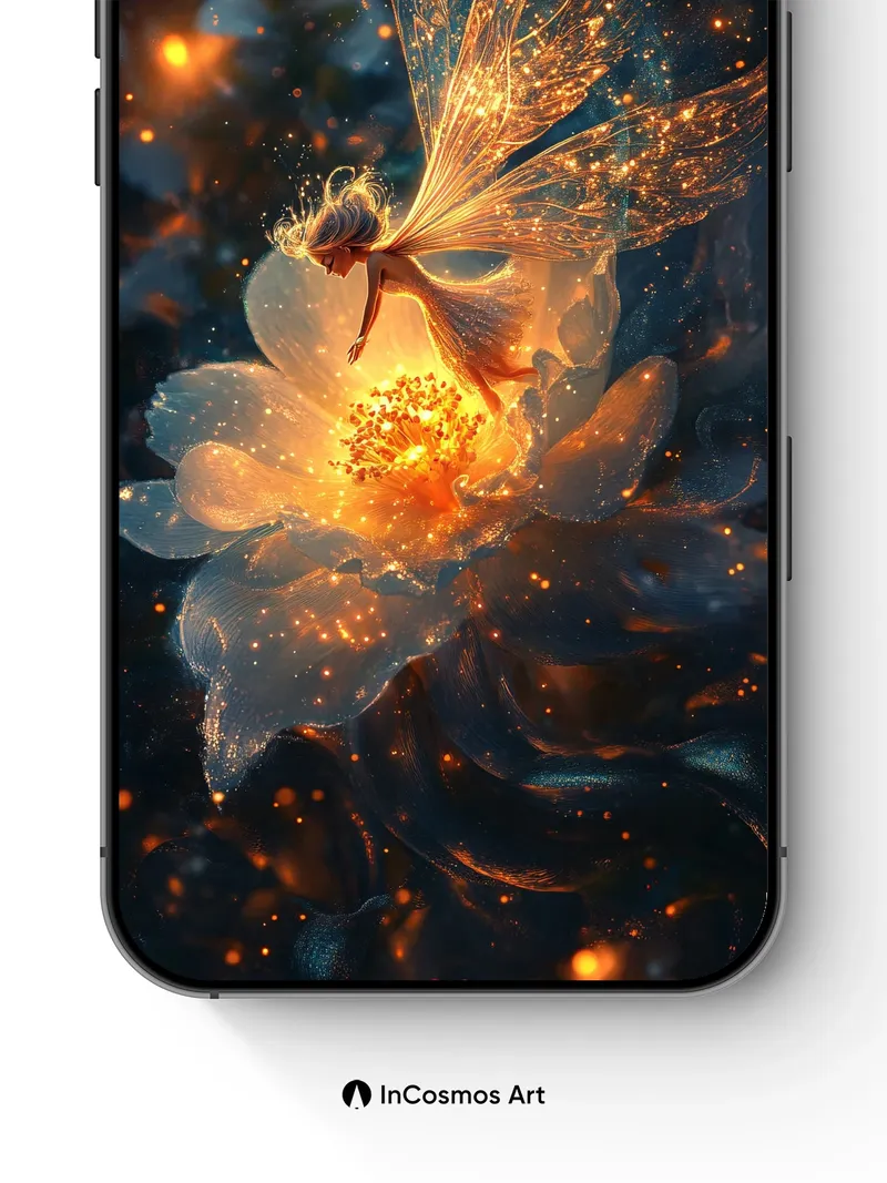 Debug page_description: Did you know fireflies once inspired ancient alchemists to believe light could be trapped in glass? Here, a fairy’s wings pulse like captured constellations, their filaments alive with amber sparks that drift through velvet night. You feel the warmth of her flight as she hovers over a flower blooming from liquid gold, petals translucent and breathing with inner fire. Share this with your best friend. Send this to your love and swap a matching set. What if magic were real, and you could hear the flowers sing?