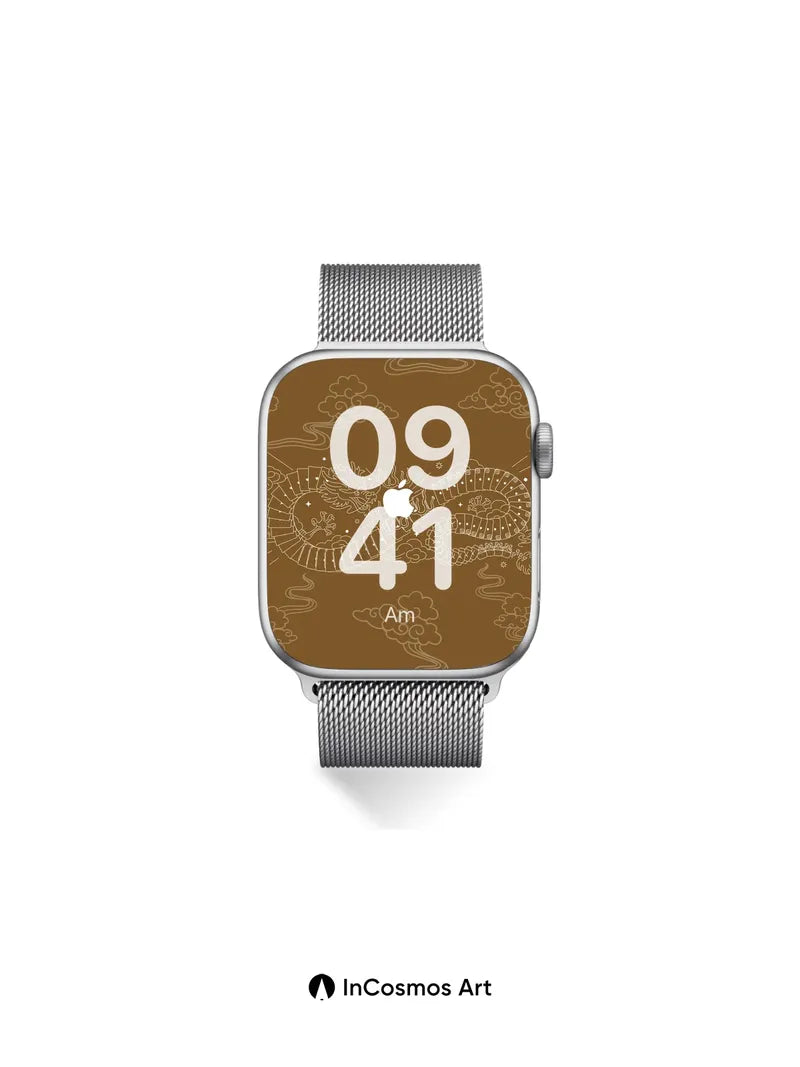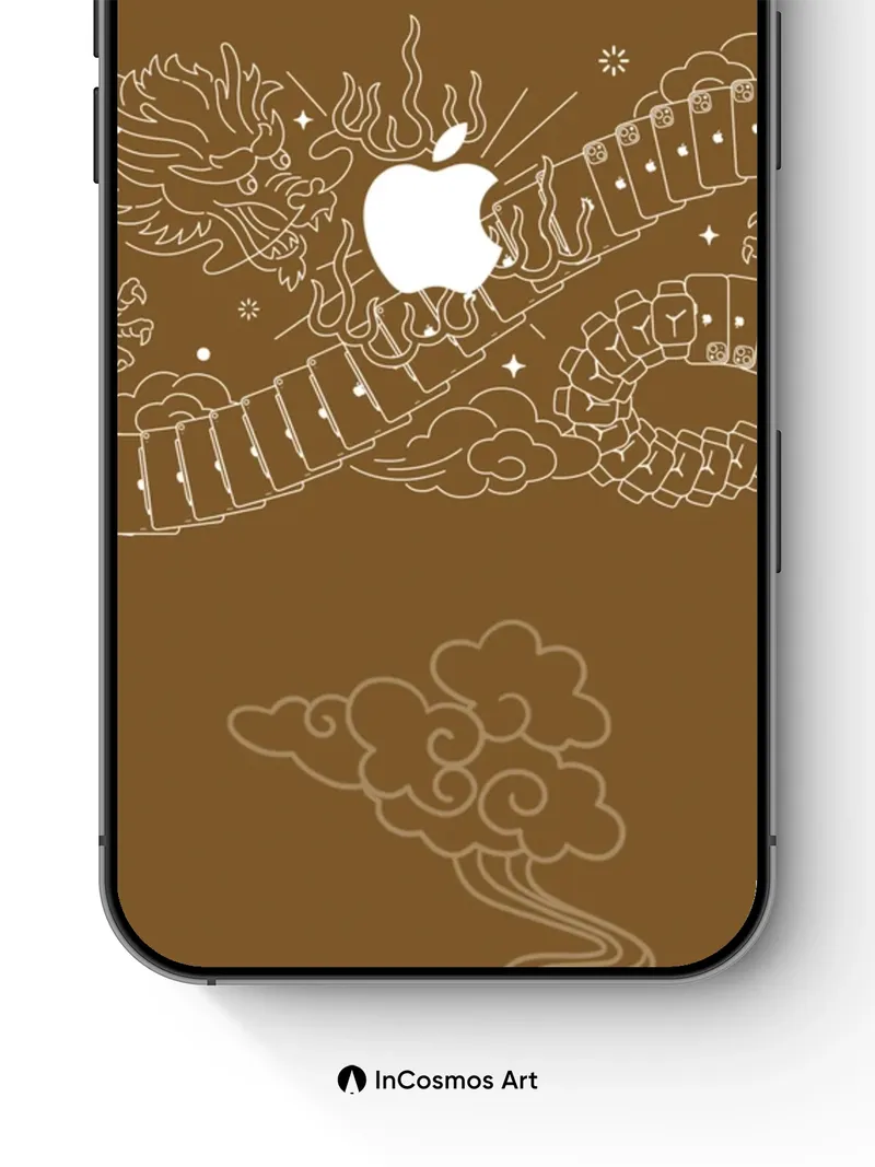 Debug page_description: Did you know ancient Chinese artisans carved dragons into jade to symbolize celestial power? Here, a delicate serpent coils through misty clouds, its scales etched in fine gold lines, while a glowing white apple rests at its core like a sacred jewel. The warmth of the bronze backdrop breathes life into every curve, making the dragon feel both mythical and modern. Share this with your best friend. Send this to your love and swap a matching set. What if the dragon woke up just for you?