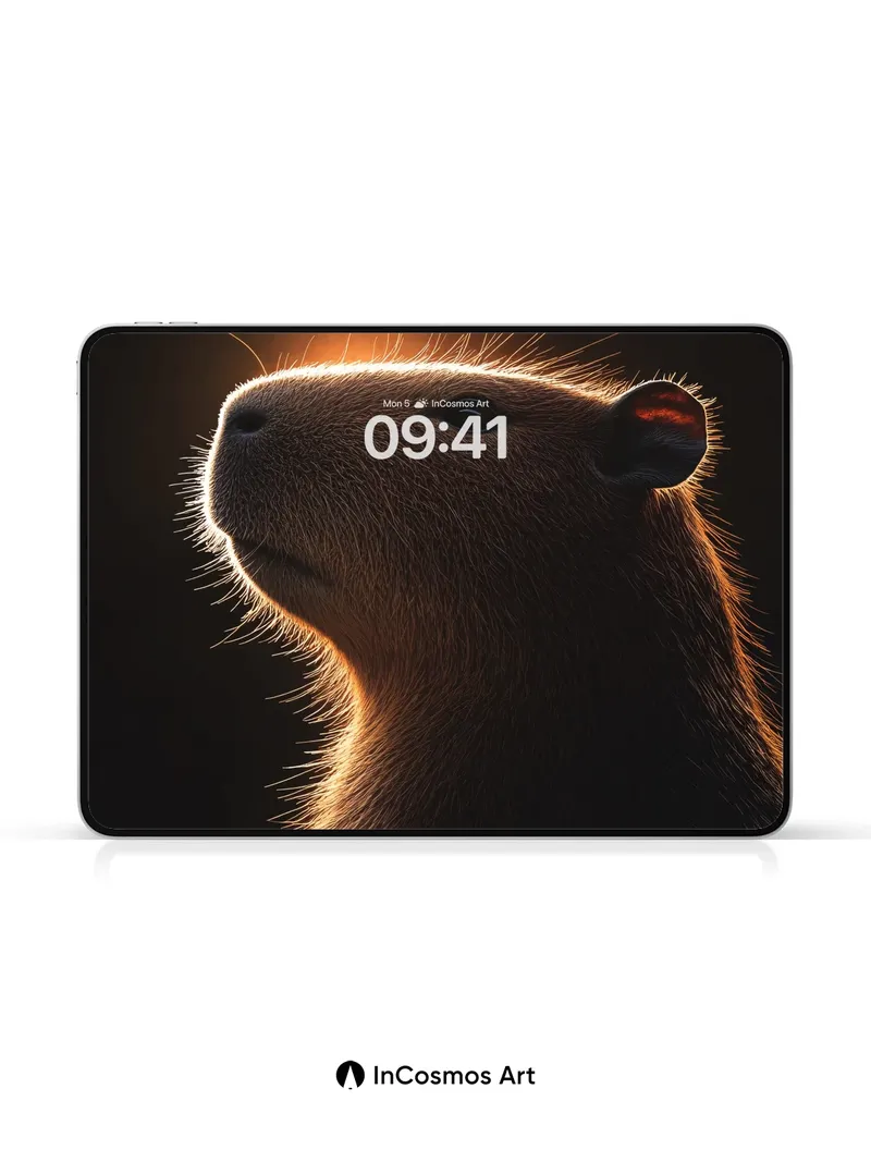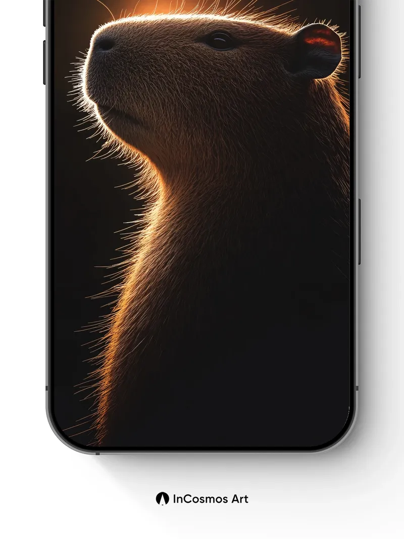 Golden Silhouette Capybara Wallpaper with Ethereal Light