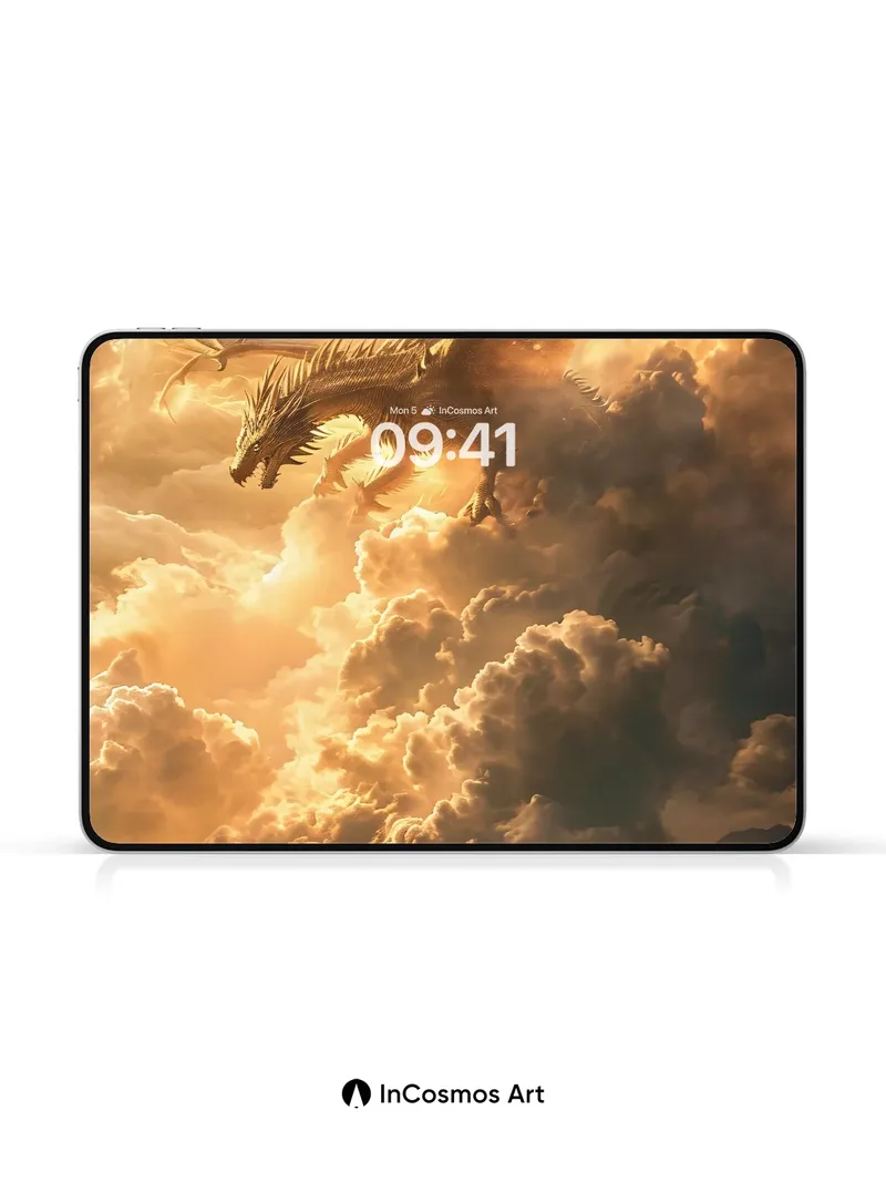 Golden Sky Sovereign Wallpaper with Cloud-Clad Wings