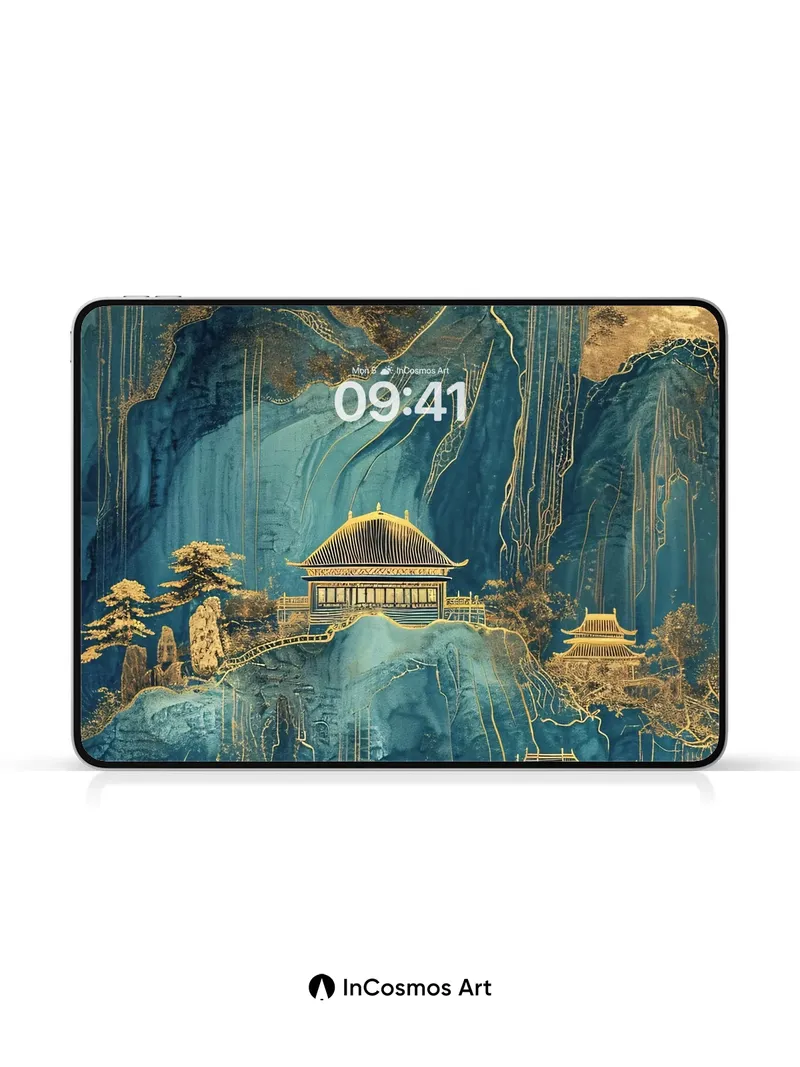 Golden Veil Mountain Wallpaper with Ancient Temples