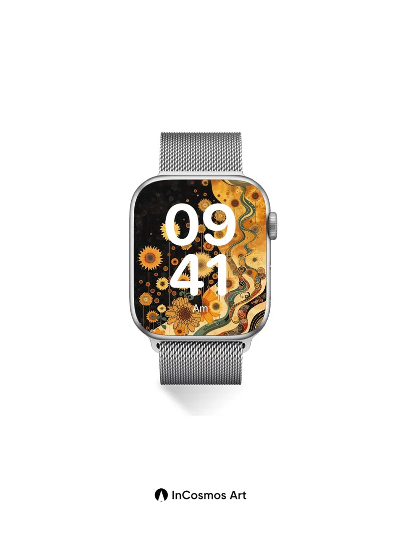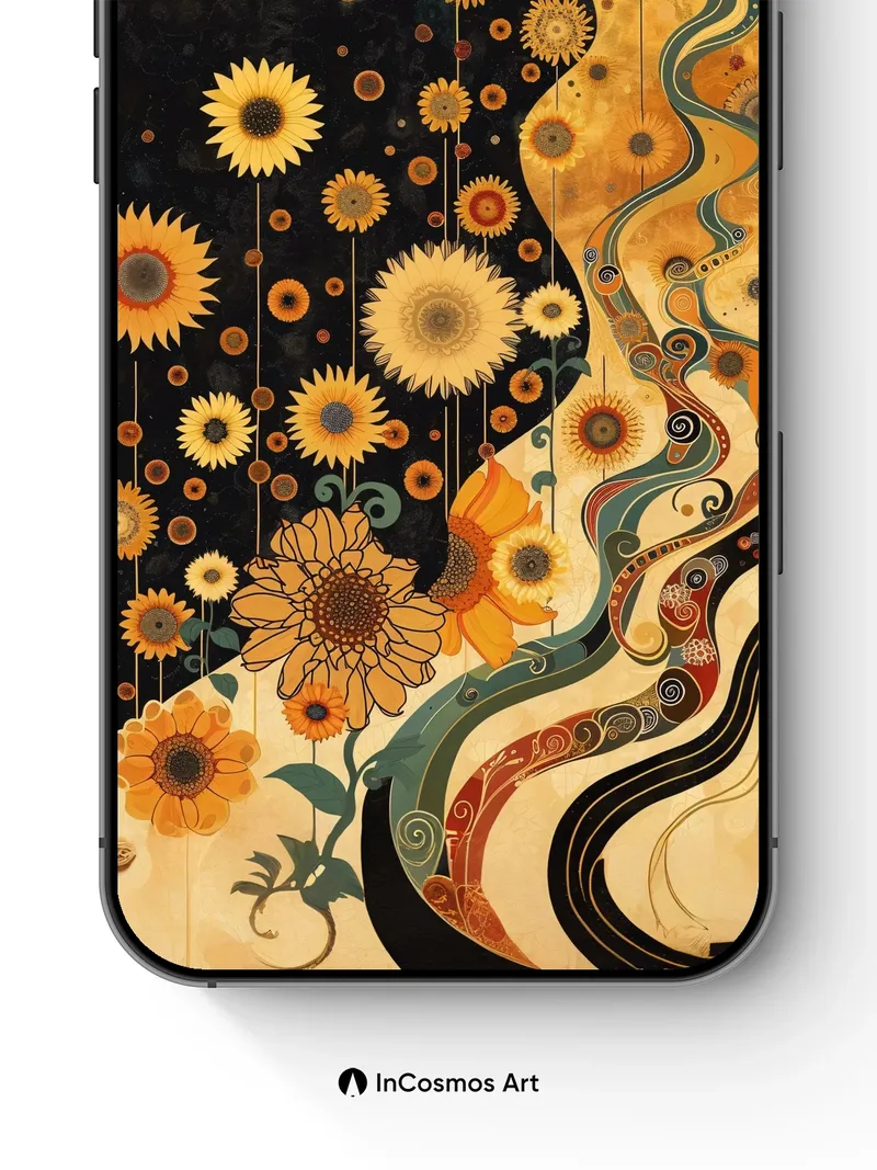 Golden Whirlpool Wallpaper with Sunflower Veins