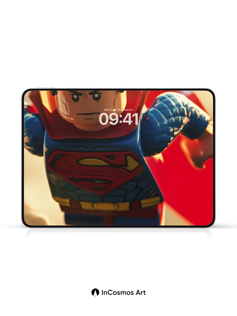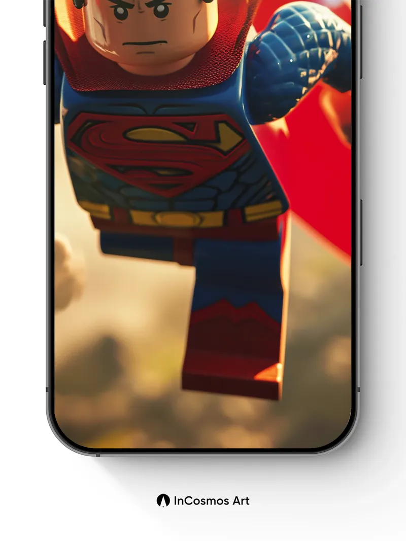 Debug page_description: Did you know LEGO bricks were originally designed to be interlocking toys in 1949? Here, Superman’s iconic form soars through golden haze, his red cape flaring like a flame caught in wind, while sunlight crawls over every molded ridge of his suit. The texture breathes life into the plastic—each crease and curve tells a story of childhood wonder and timeless power. Share this with your best friend. Send this to your love and swap a matching set. What if every hero began as a child's imagination?