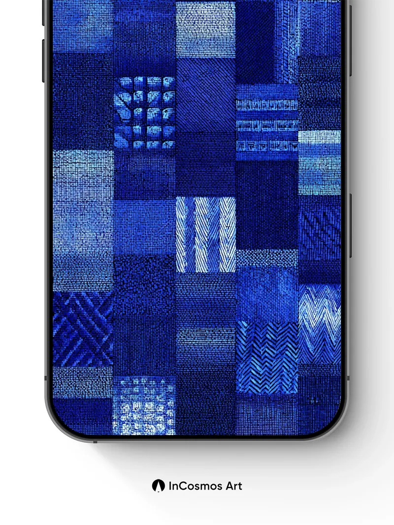 Indigo Tapestry Wallpaper with Patchwork Weave