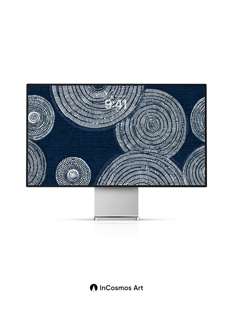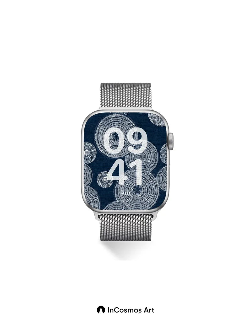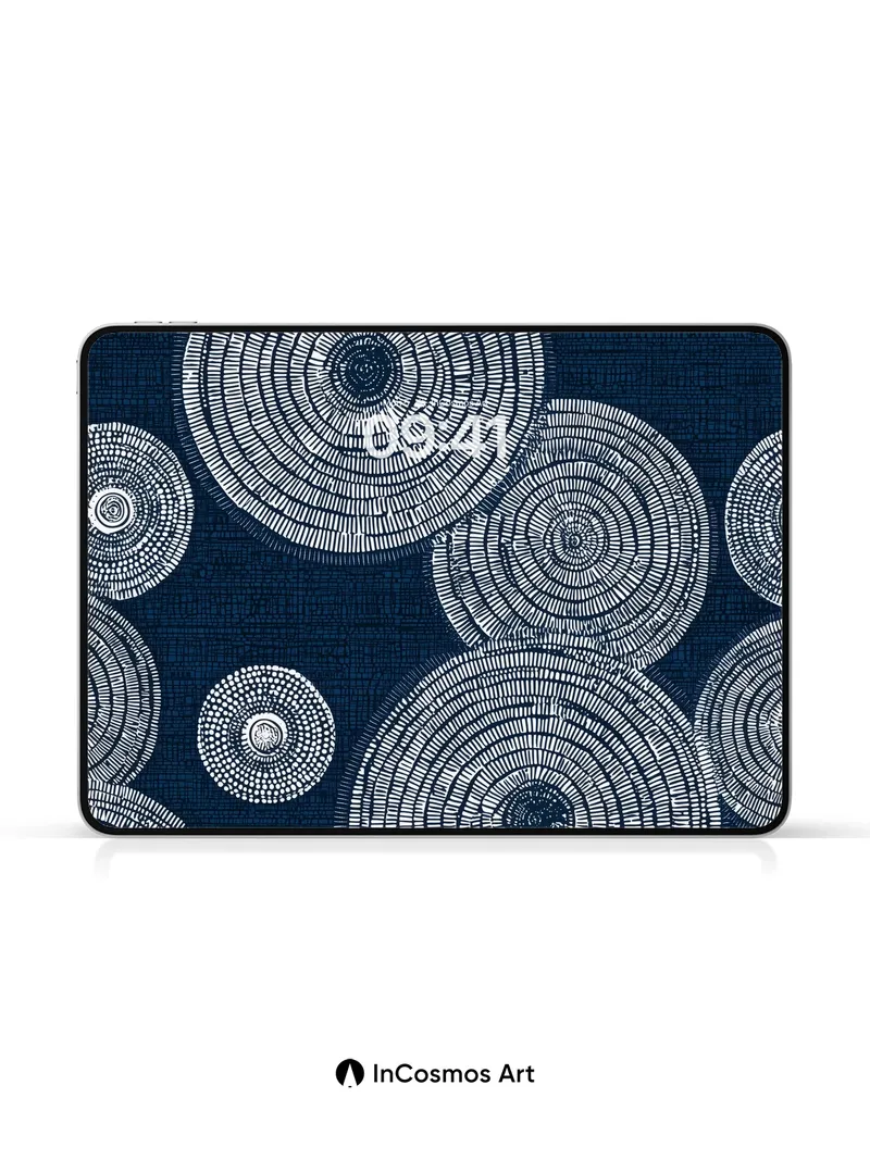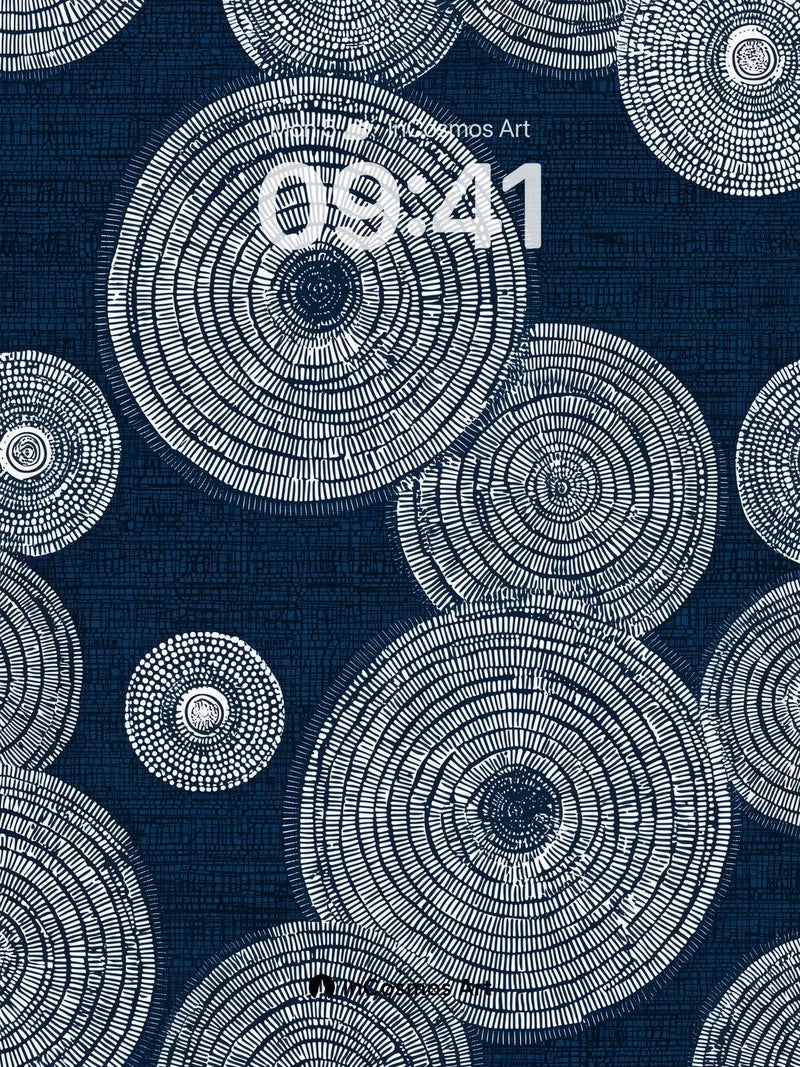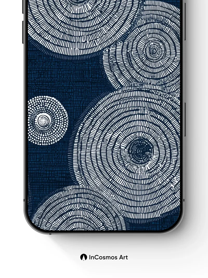 Indigo Whirlpool Wallpaper with Ancient Circles