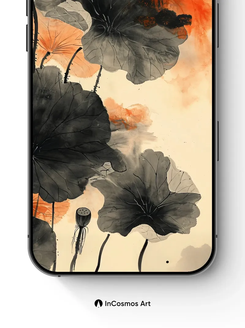 Debug page_description: Did you know that traditional sumi-e artists once used water from mountain streams to blend their ink, creating depth that mimics the breath of nature? Here, charcoal leaves unfurl like whispers across a parchment sky, while rust-orange blooms bleed into the air like forgotten sunsets. You’re not just seeing a scene—you’re stepping into a quiet moment where stillness speaks in strokes. Share this with your best friend. Send this to your love and swap a matching set. What if every wall could remember the rain?
