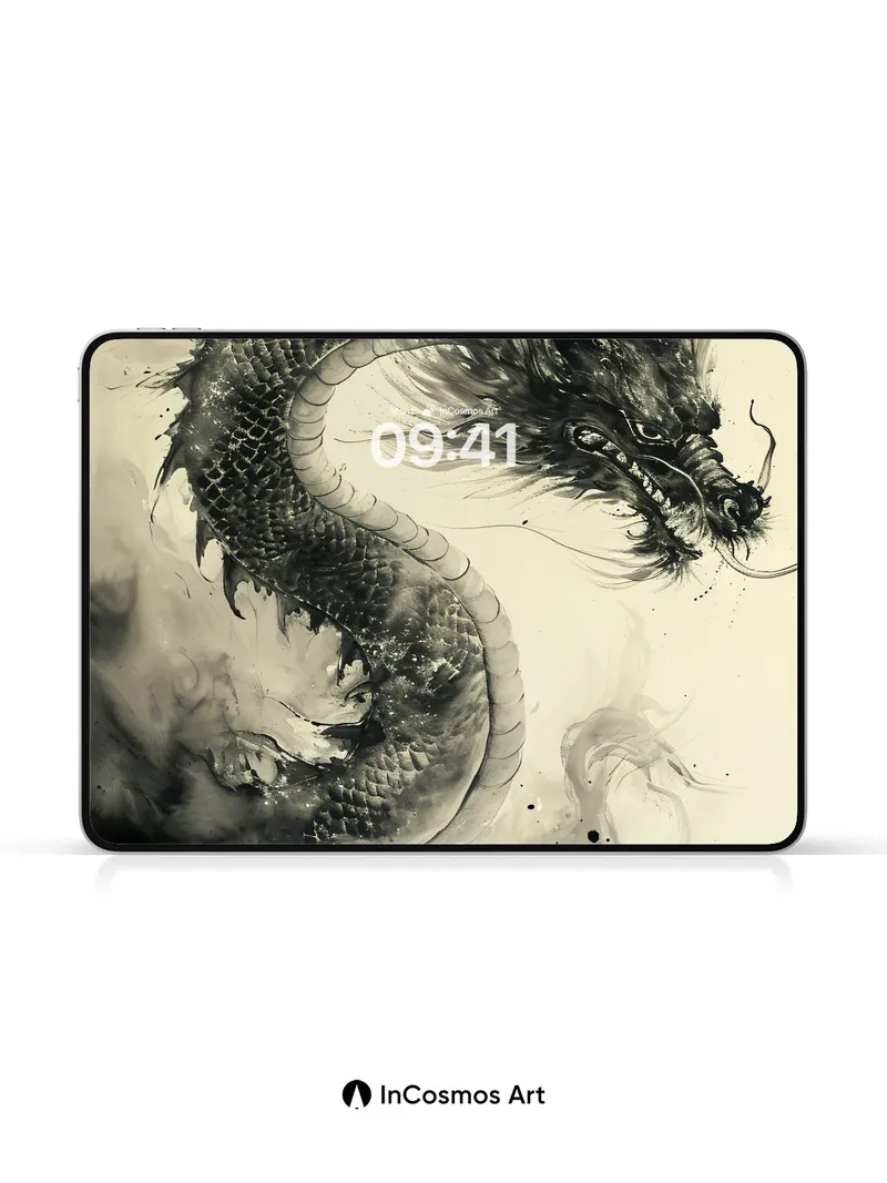 Ink Storm Dragon Wallpaper with Ethereal Smoke
