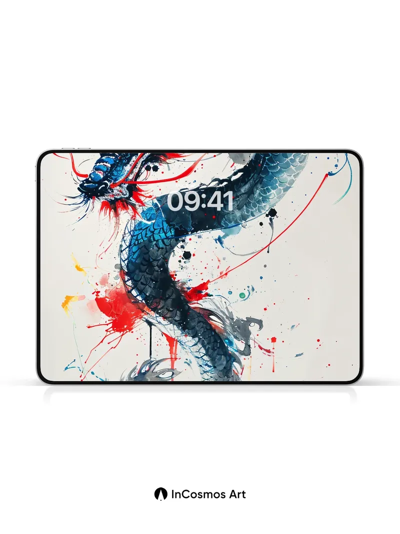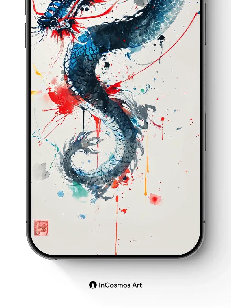 Inkstorm Dragon Wallpaper with Splattered Fire
