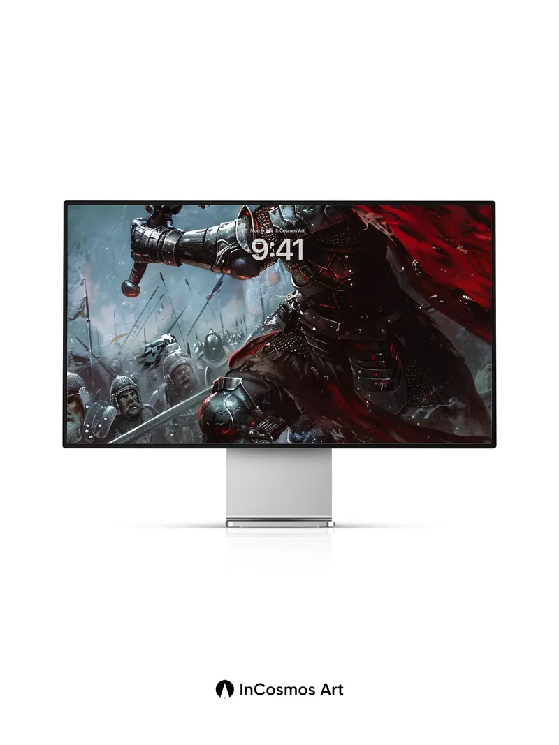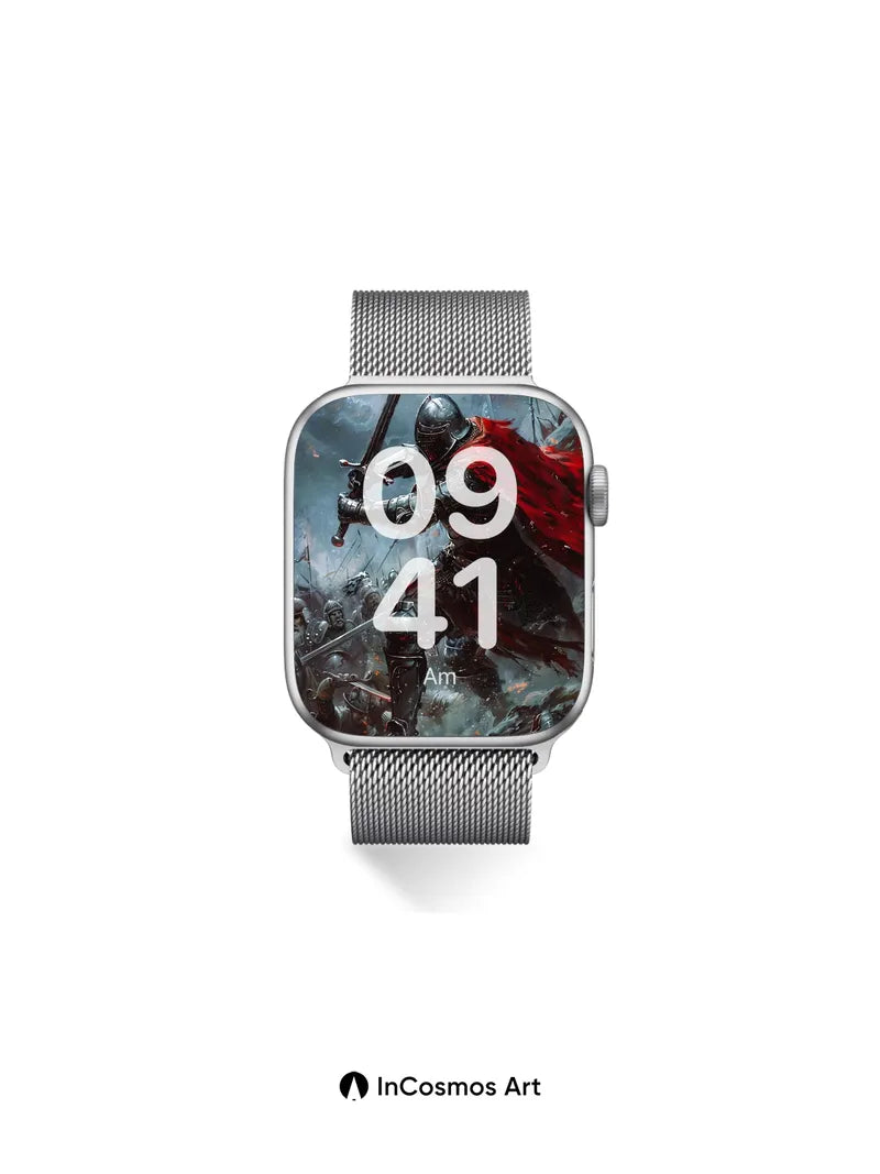 Debug product.metafields.custom.desc: Did you know medieval knights once forged their armor in the same fires that lit their banners? Here, steel breathes under storm-lit skies, its surface etched with battle scars and glowing embers. A crimson cloak flares like a wound in the wind, slicing through smoke and shadow as the knight strides over fallen warriors—each plate of armor reflecting the chaos above. Light crawls over metal, turning every dent into a story, every scar into a memory.