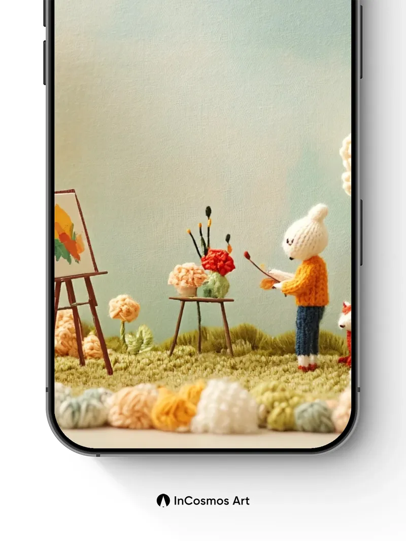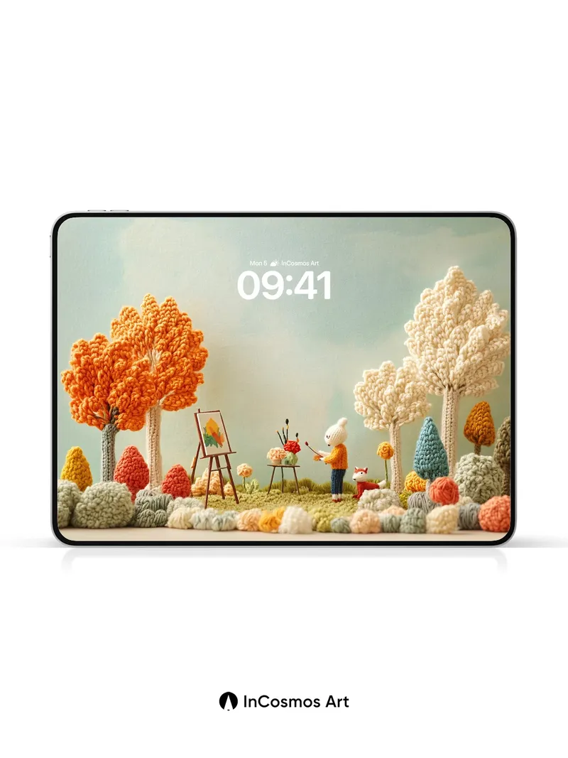 Knitted Autumn Wonderland Wallpaper with Tiny Artist
