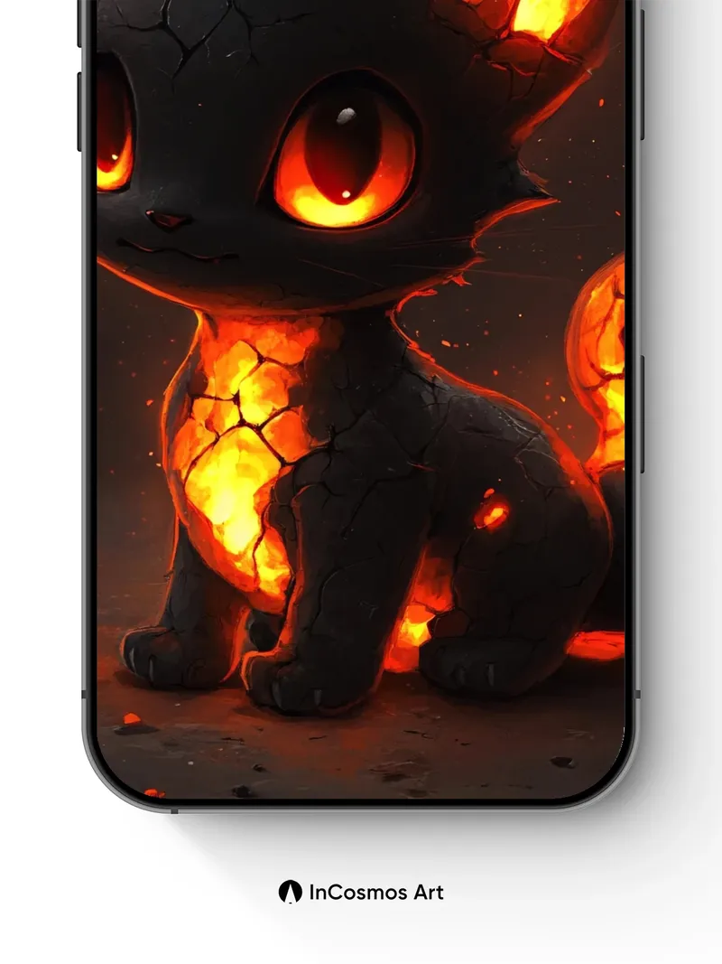 Lava-Hearted Kitten Wallpaper with Cracked Ember Skin