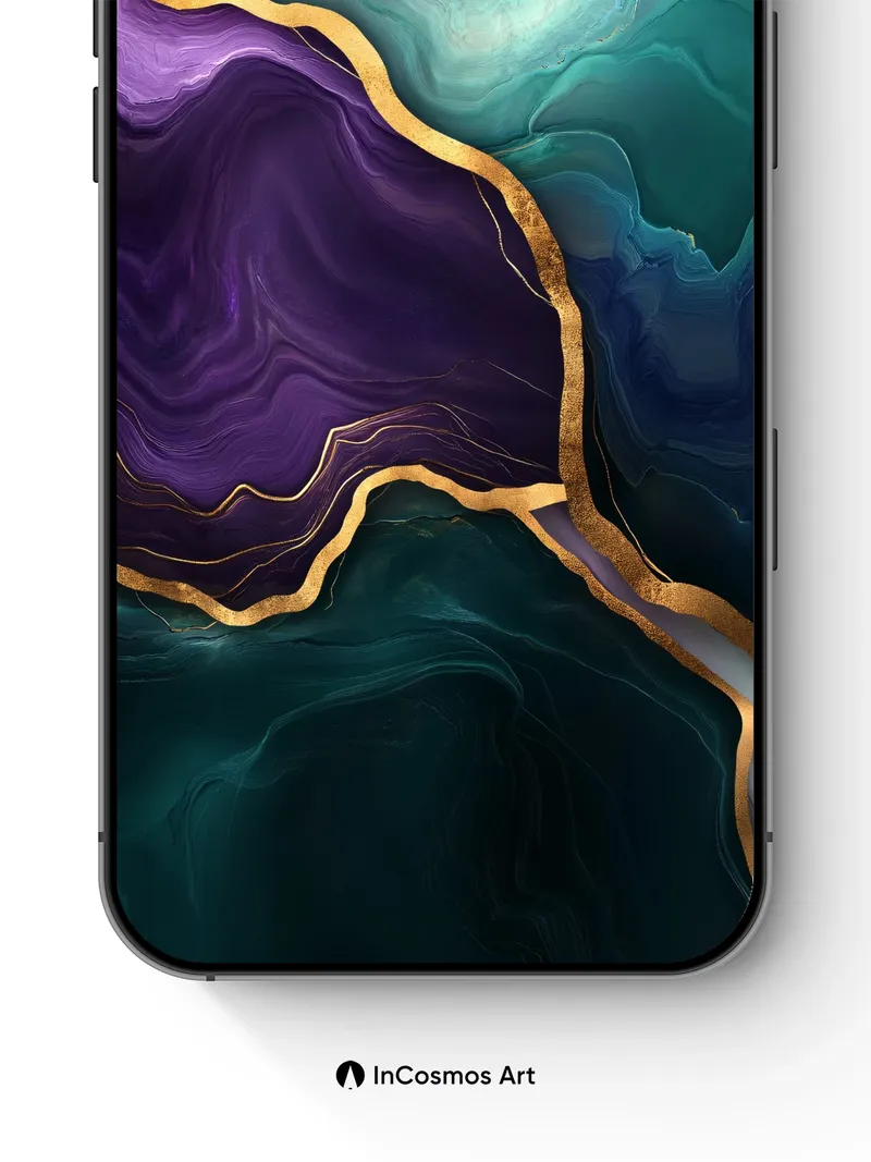 Did you know that ancient alchemists believed gold could transmute base materials into something divine? Here, liquid amethyst and jade flow like molten stone, their edges kissed by luminous veins of metallic gold—each curve a secret river in a forgotten realm. You’re not just looking at texture; you’re stepping into a world where color breathes and light crawls over deep, swirling depths.