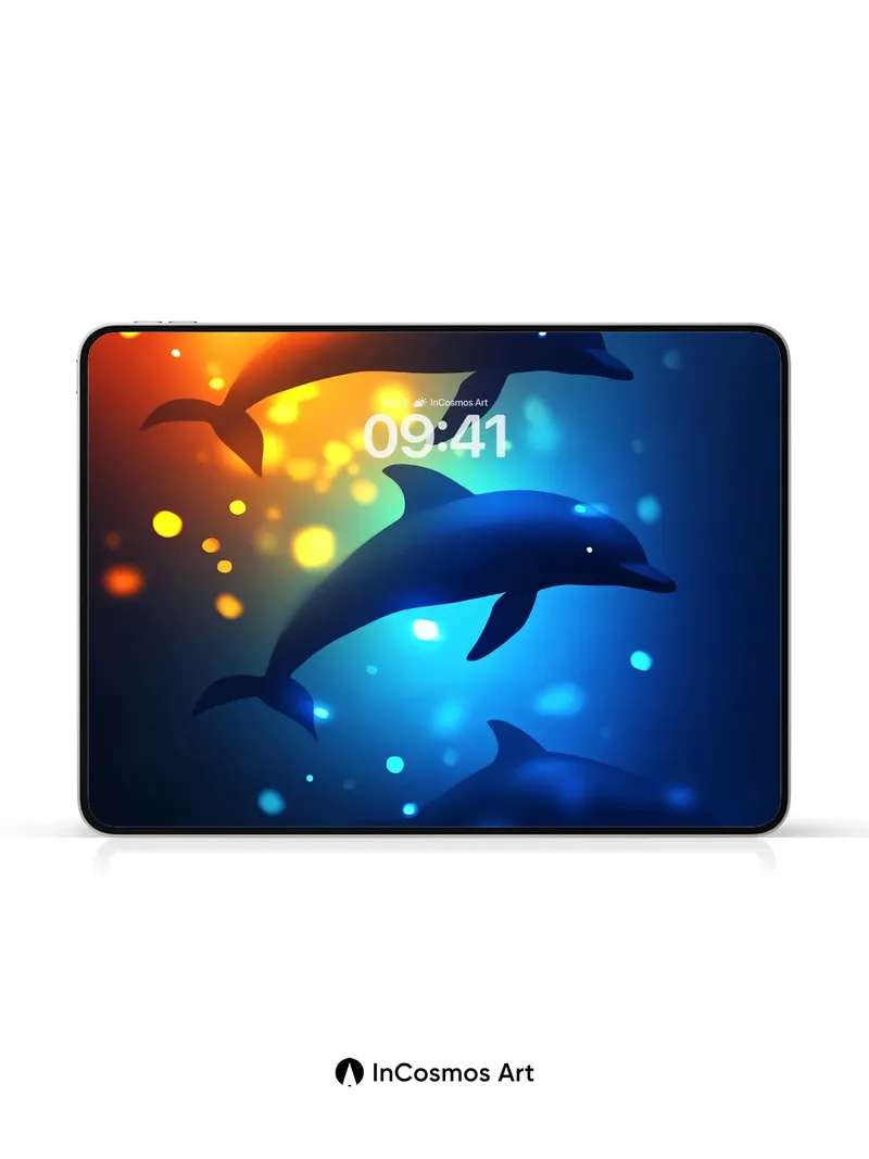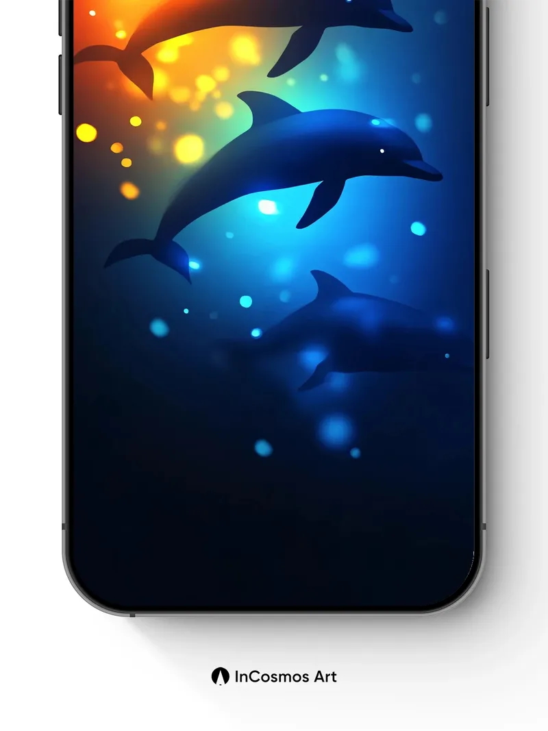 Luminous Abyss Wallpaper with Bioluminescent Dolphins