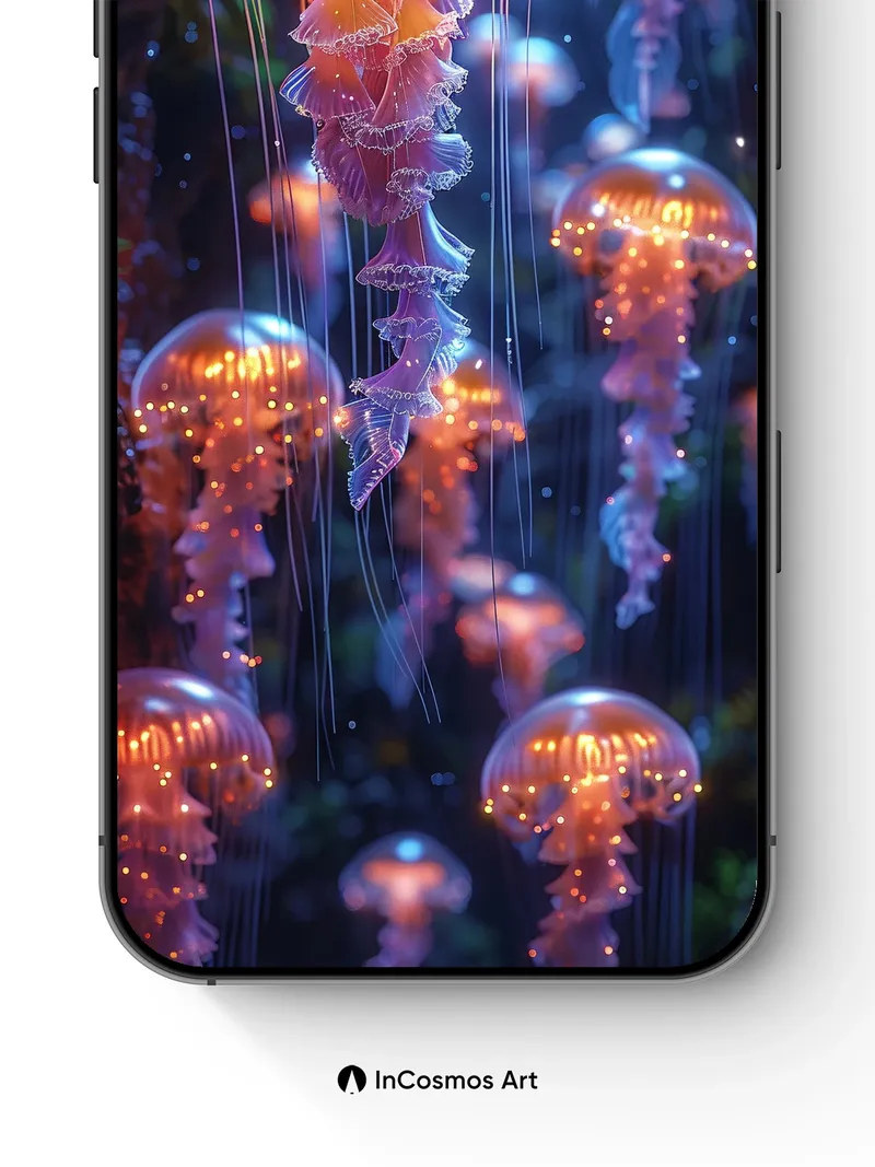 Luminous Abyss Wallpaper with Floating Bioluminescence