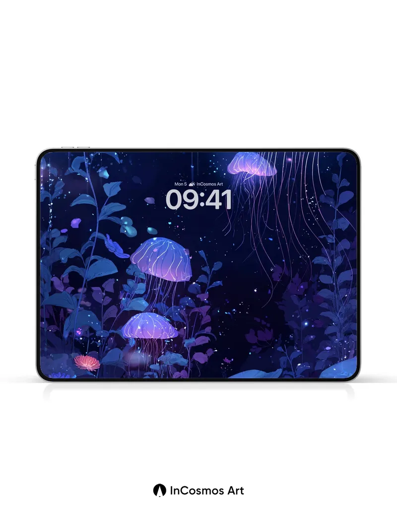 Luminous Abyss Wallpaper with Floating Jellyfish