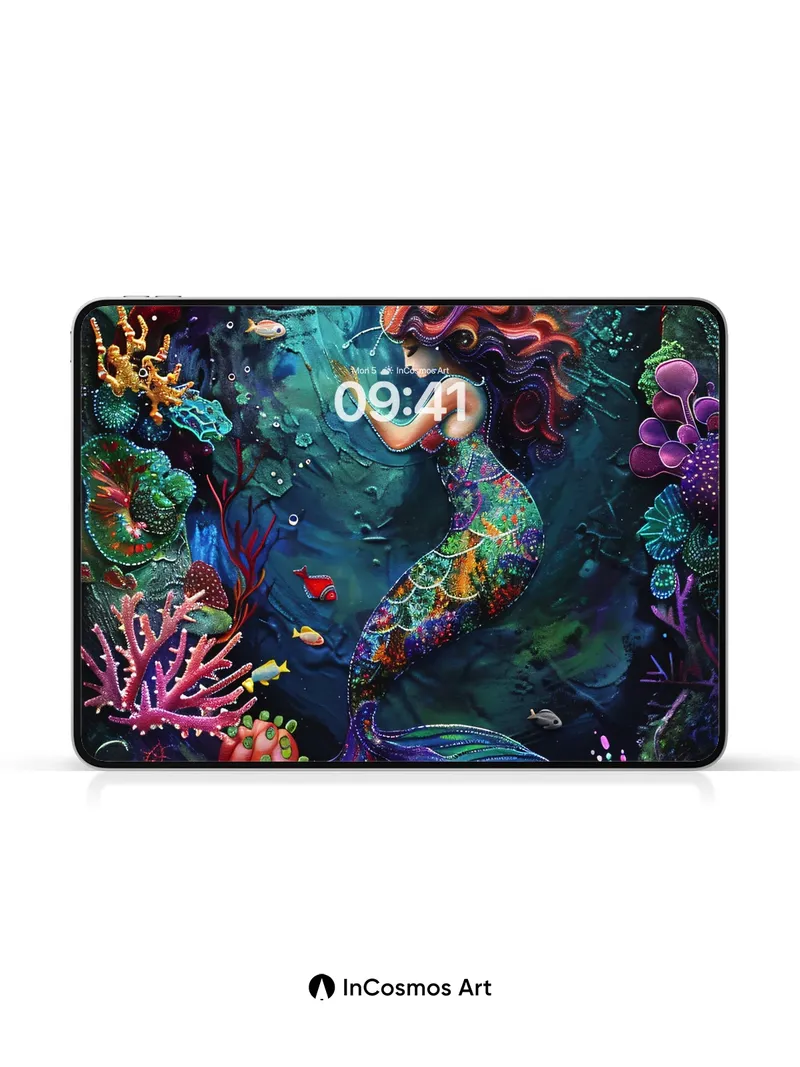 Luminous Abyss Wallpaper with Mythic Mermaid