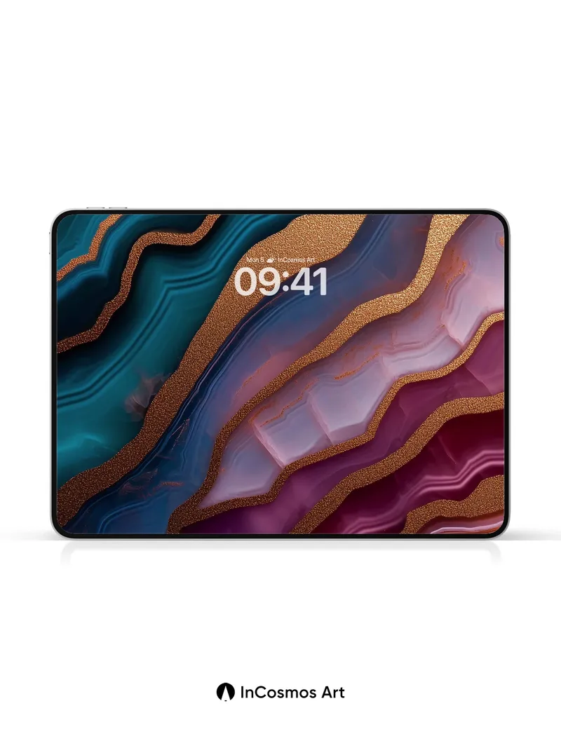 Debug page_description: Did you know that agate forms over millennia as mineral-rich water seeps through volcanic rock, leaving behind swirling bands of color like liquid stone? Here, the deep teal and amethyst layers shimmer with a molten glow, edged in fine gold dust that catches light like ancient treasure. Each curve feels alive, breathing beneath your gaze—nature’s secret geometry made visible. Share this with your best friend. Send this to your love and swap a matching set. What if your walls could remember the earth’s slow heartbeat?