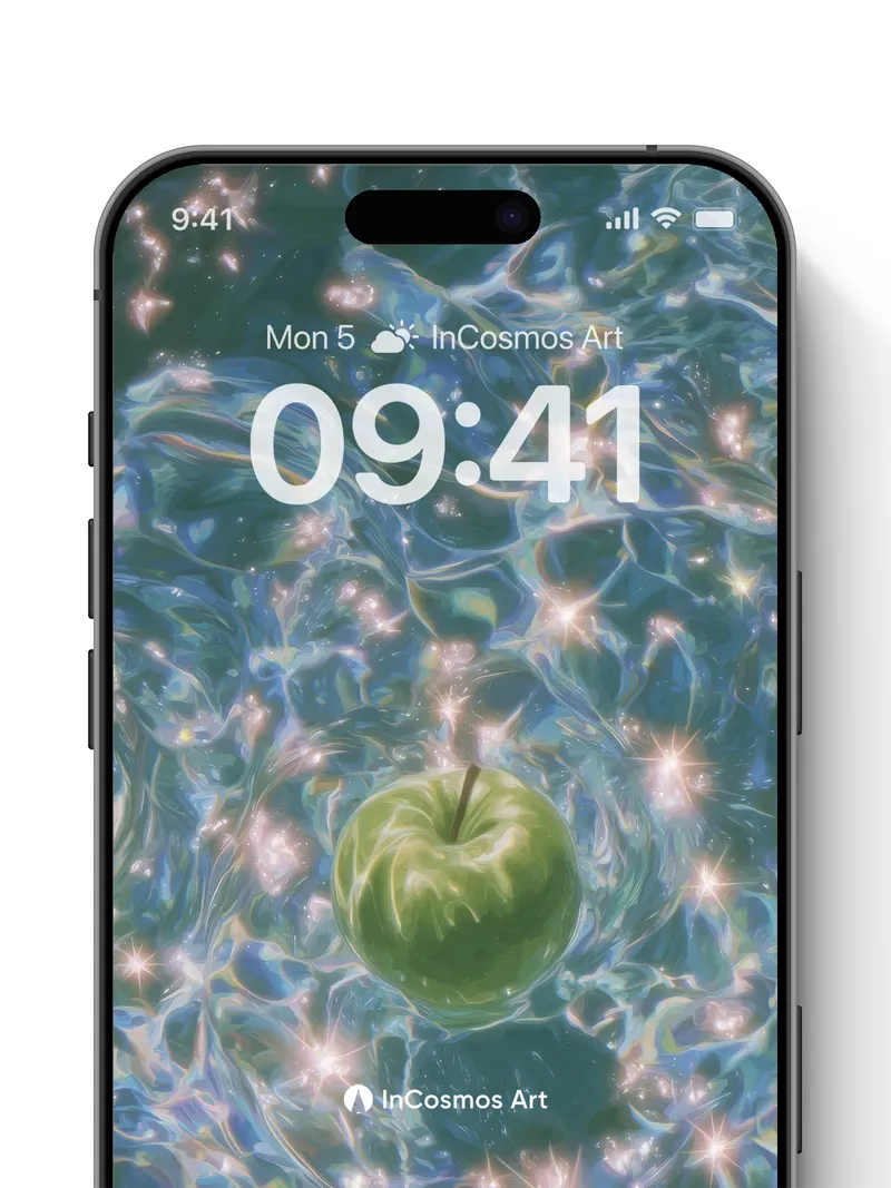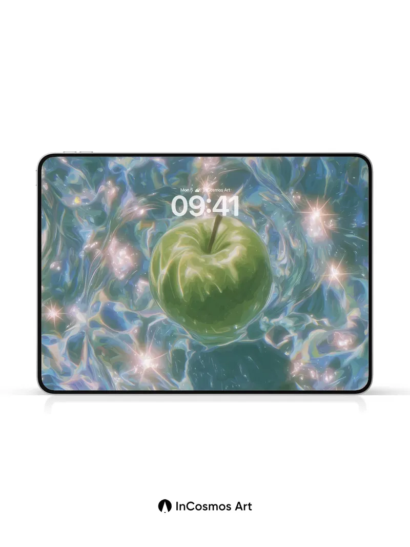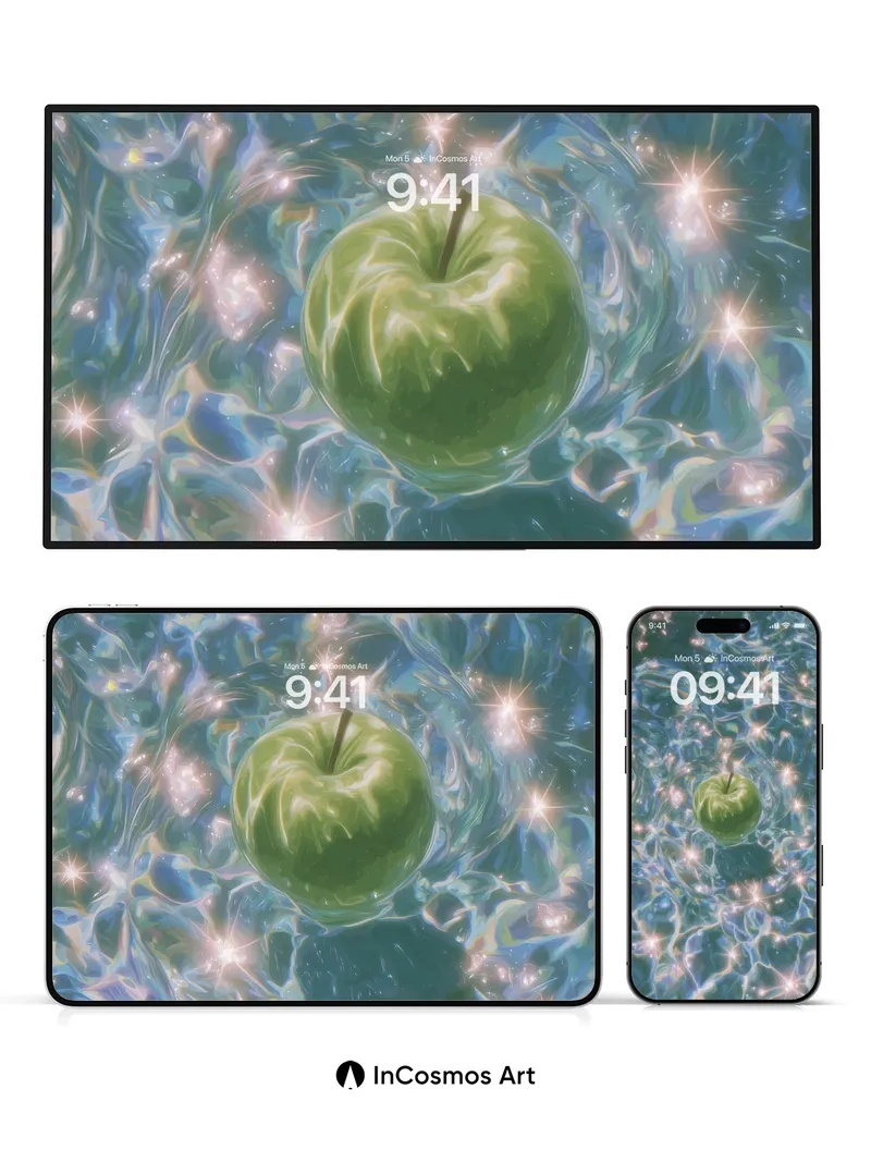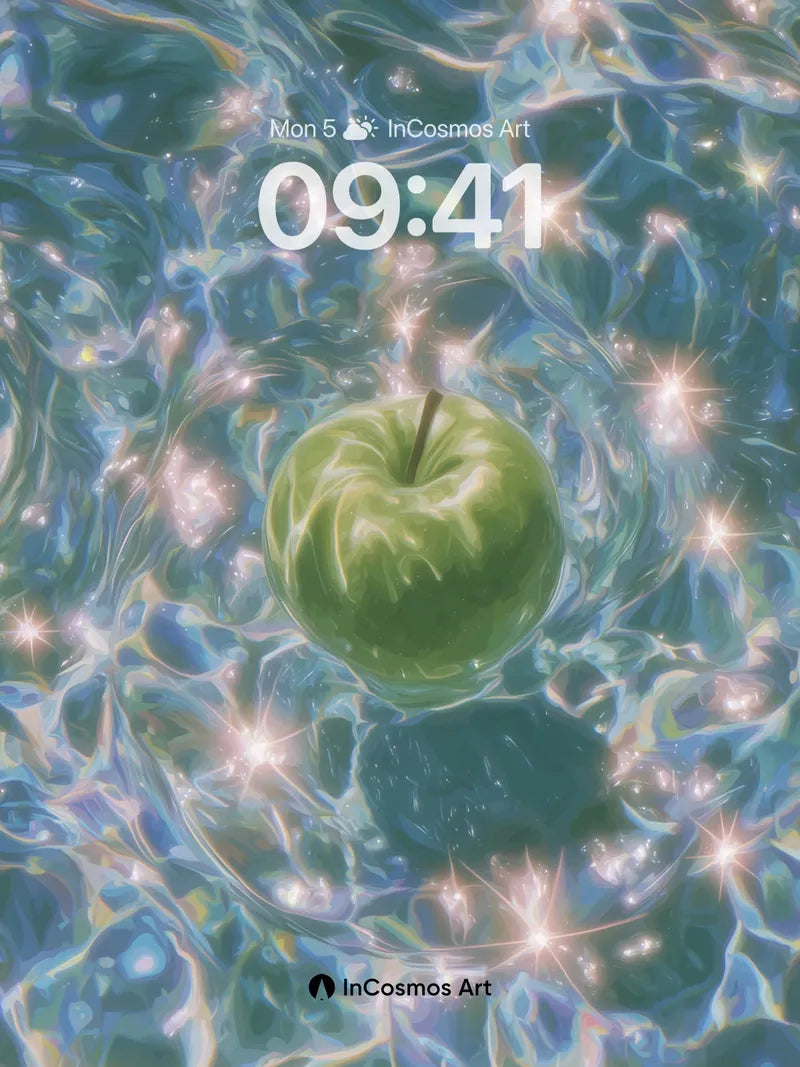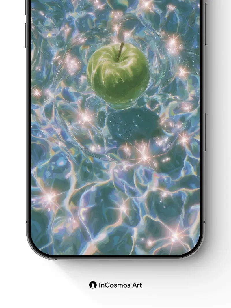 Luminous Apple Wallpaper with Starlit Water